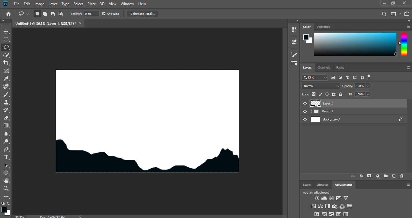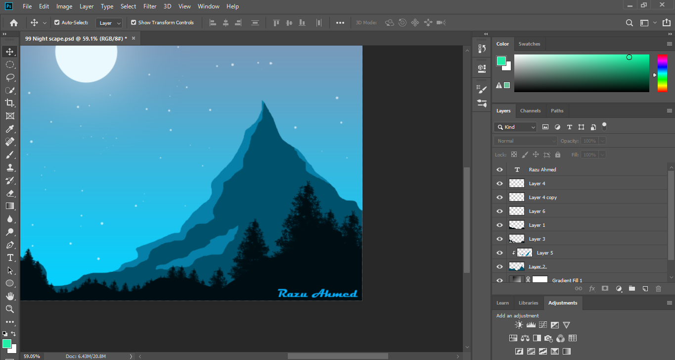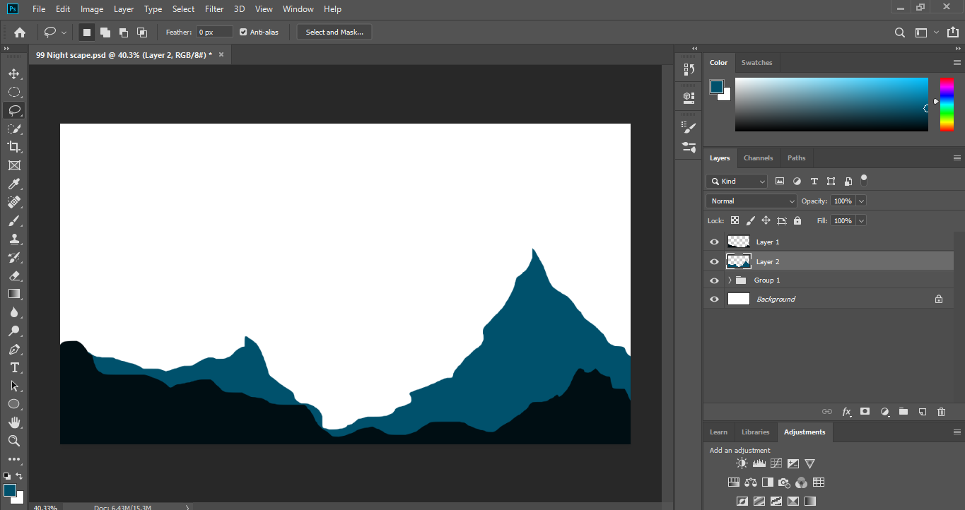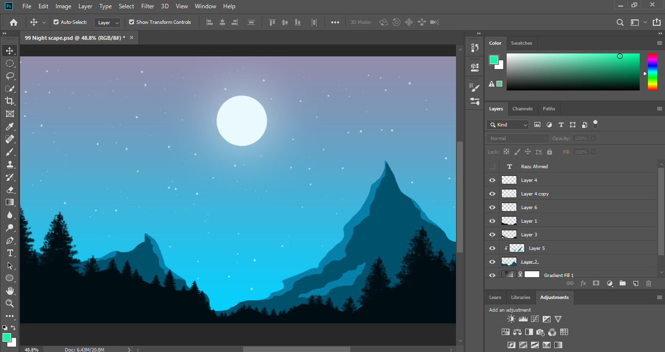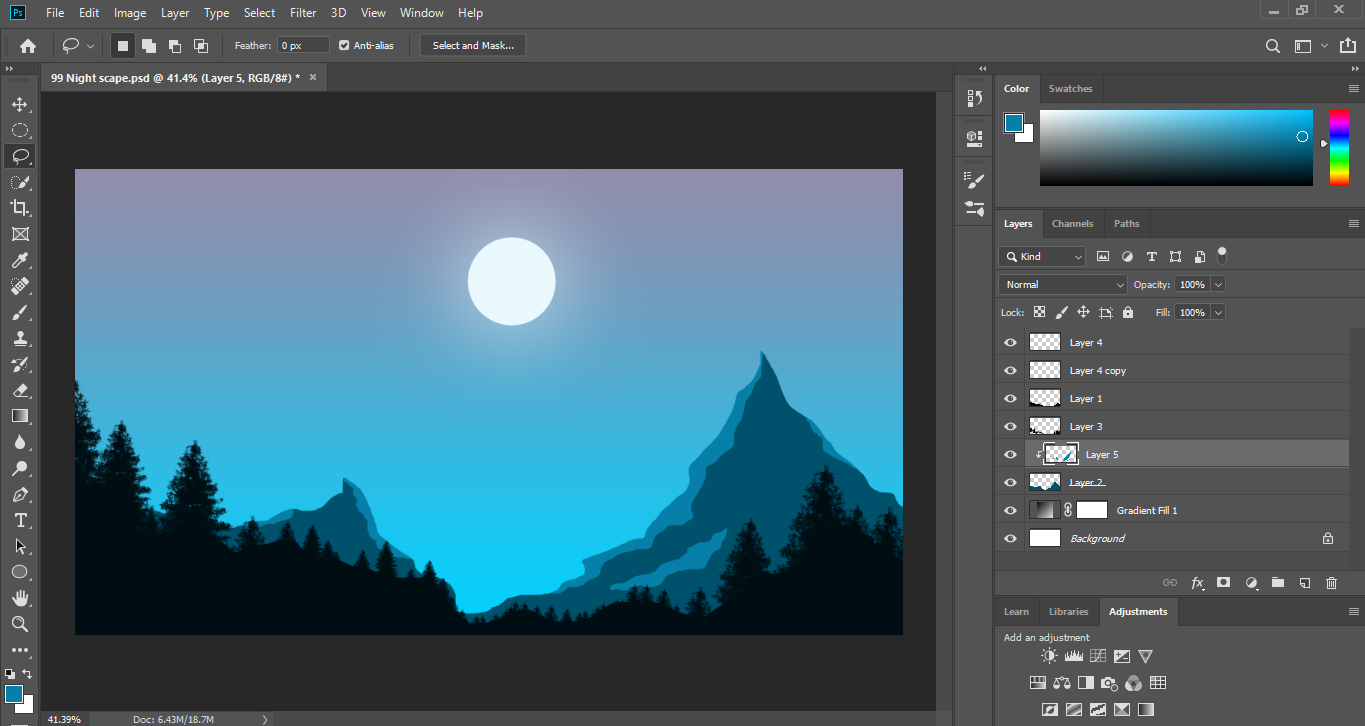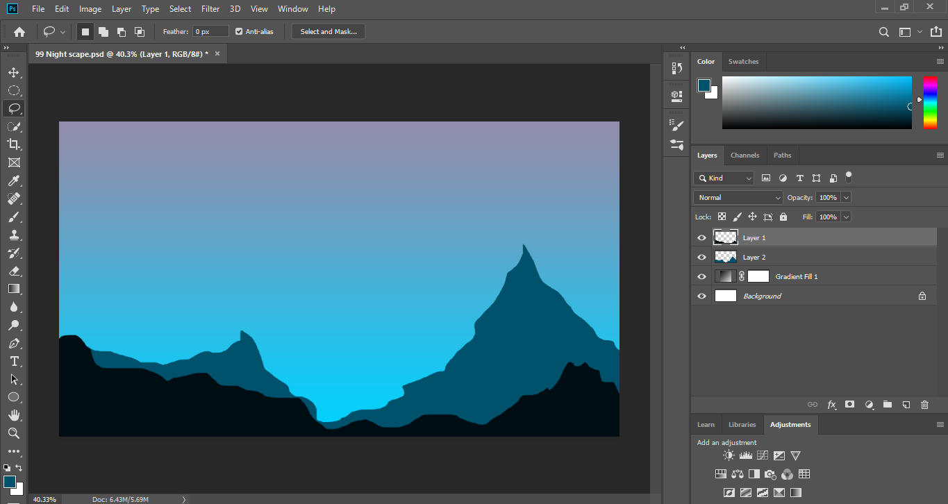 প্রথমে একটি লেয়ার খুলে নেই আমি। লেসো টুল দিয়ে মাটির অংশ বানিয়ে ফেলি। রাতের দৃশ্য যেহেতু তাই একটু নীল করে বানাই।