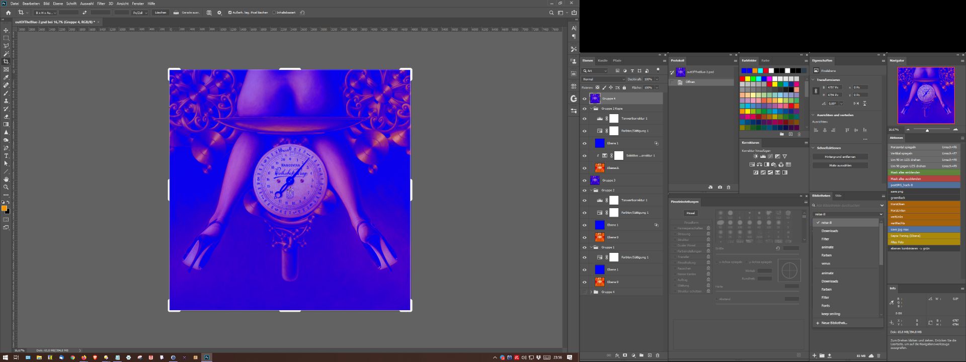 Inspired by this beautiful artwork, I set out to create the second piece of my "Out of the Blue" series. It was supposed to be an animation again, but in contrast to the usual fast and bouncy pieces, something rather slow, that matched the sensuousness of the palette. Minimalistic in movement, a very simple fade in and out, based on my picture "Libra". I have already written about the creation and my model.