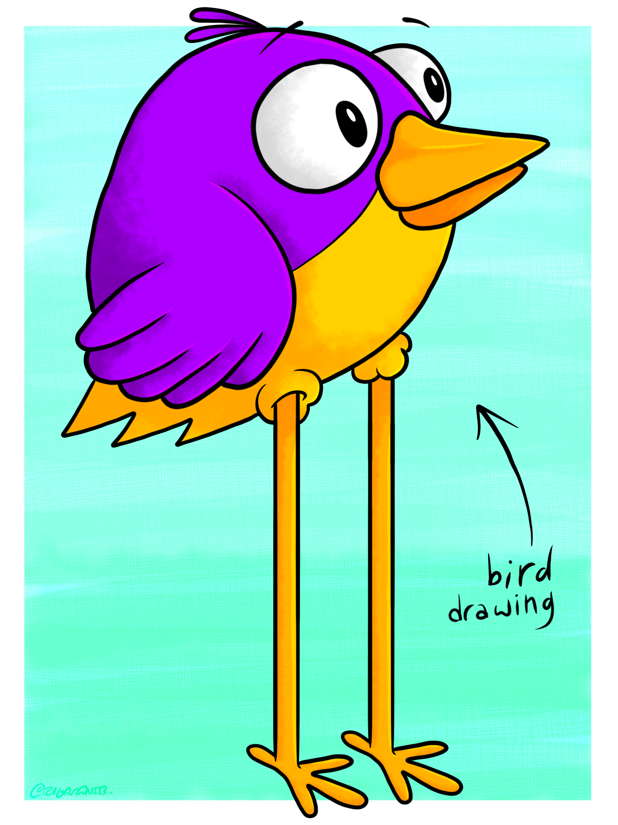 I'm glad you pointed out it is a bird drawing. I must live in a zoo because I think I saw that bird outside my window this morning. But his coloring was different. And his legs shorter. Oh, never mind. It was a crow I saw.