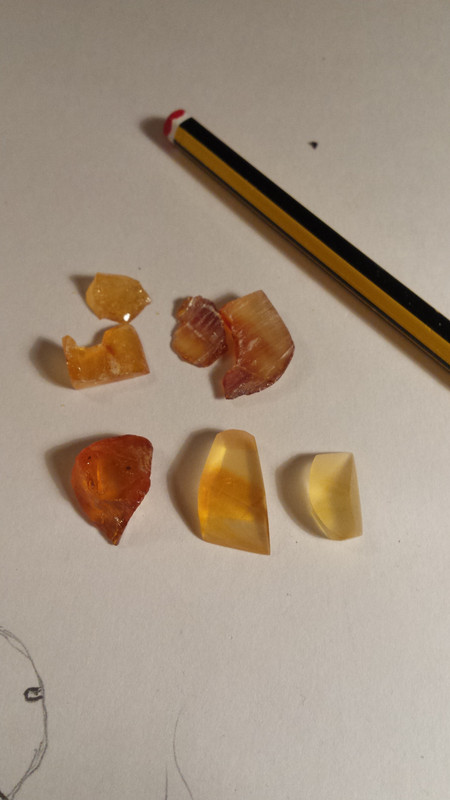 Some amber i've faceted manually using wet and dry paper. im going to try polishing them up a bit at the next session.