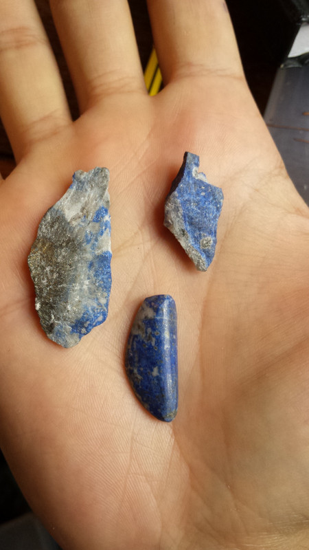 A good before/after picture of some low grade lapis lazuli rough i've had sitting around for years.