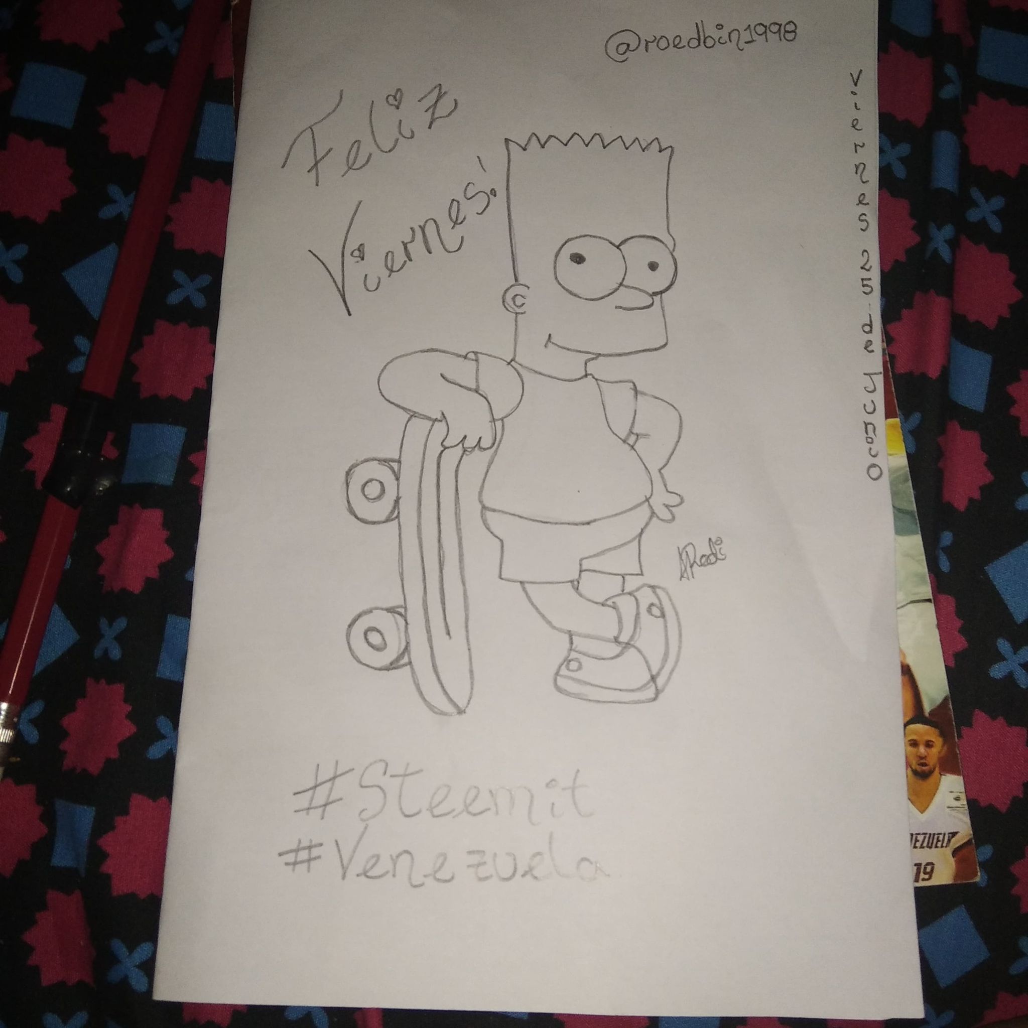 feliz viernes con bart 🇻🇪 @roedbin1998 🇻🇪 sabado 25-06-2021roedbin1998 (46)in ART 🌻🎨📝 • 5 years ago ¡¡¡ Feliz viernes steemit art 🇻🇪🎨 !!! ¡¡les deseo un muy buen fin de semana con el mejor bart simpson!!🥂🍻🍾 #art #life #steemit #venezuela #pencil #spanish #steemexclusive