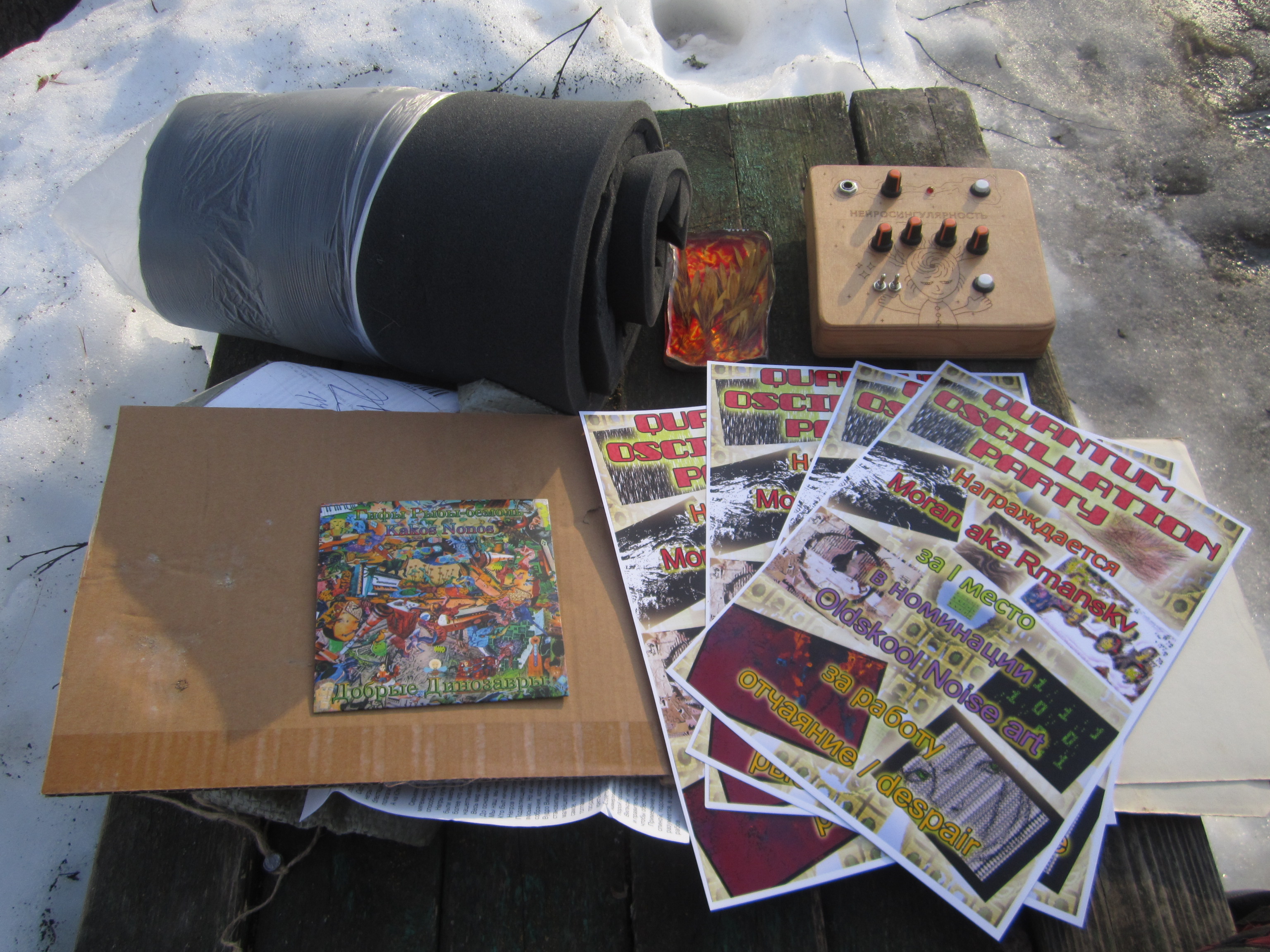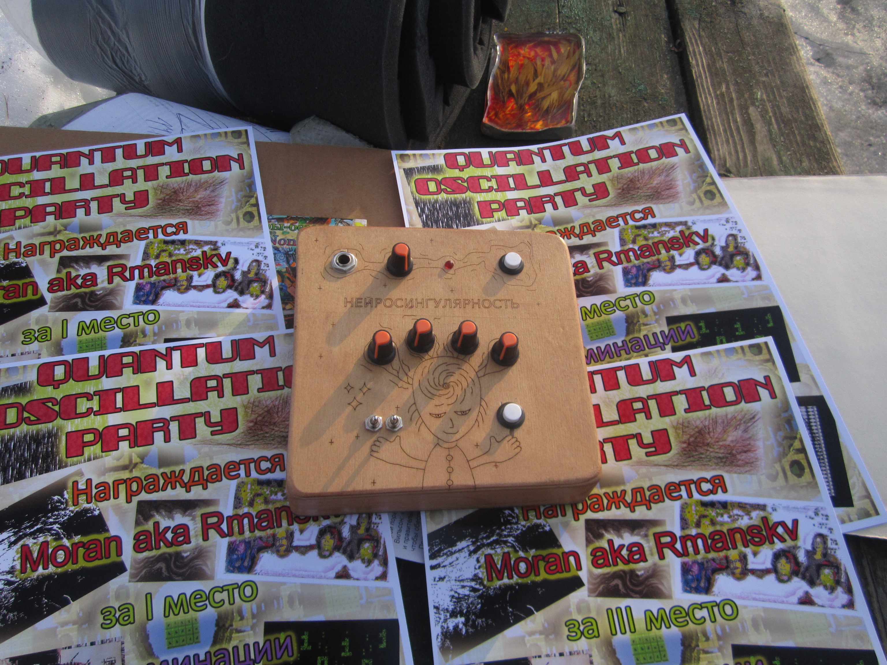 Выражаю благодарность организаторам сего мероприятия за сакральные дары,а в частности Kakos Nonos за шизогенератор сингулярной нейропластичности по использовании которого я скорее всего просветлюсь и стану мега надменным и возгоржусь своей осознанностью тонкими материями грубого плана космической инфлюэнции и не буду ни с кем здороваться,считая это ниже своей мании величия ,при этом буду обмахиваться пачкой грамот для создания прохлады кипящим мозгам,в моменте слушая присланный диск с авторскими шумами и истово размышлять и надеяться ,что ту инвазию Ясеня Американского ,что в брикете из бокситки ,через миллион лет после людей найдут своими шелудивыми лапками еноты-археологи и секвенируют его геном и вырастят,а когда он снова заполонит пол Земли свой порослю,будут чесать себя за ушками не зная что делать...