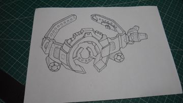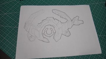After i am happy with the shape I draw the outline of the spaceship with 0,3 ink pen and fixing the small mistakes. In this step if you want you can draw exactly what you did with pencil or if you changed your mind you can correct shapes with ink pen. But keep in mind that mistakes done by pen is harder to recover.