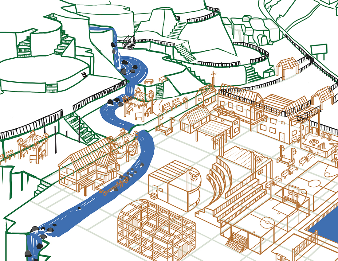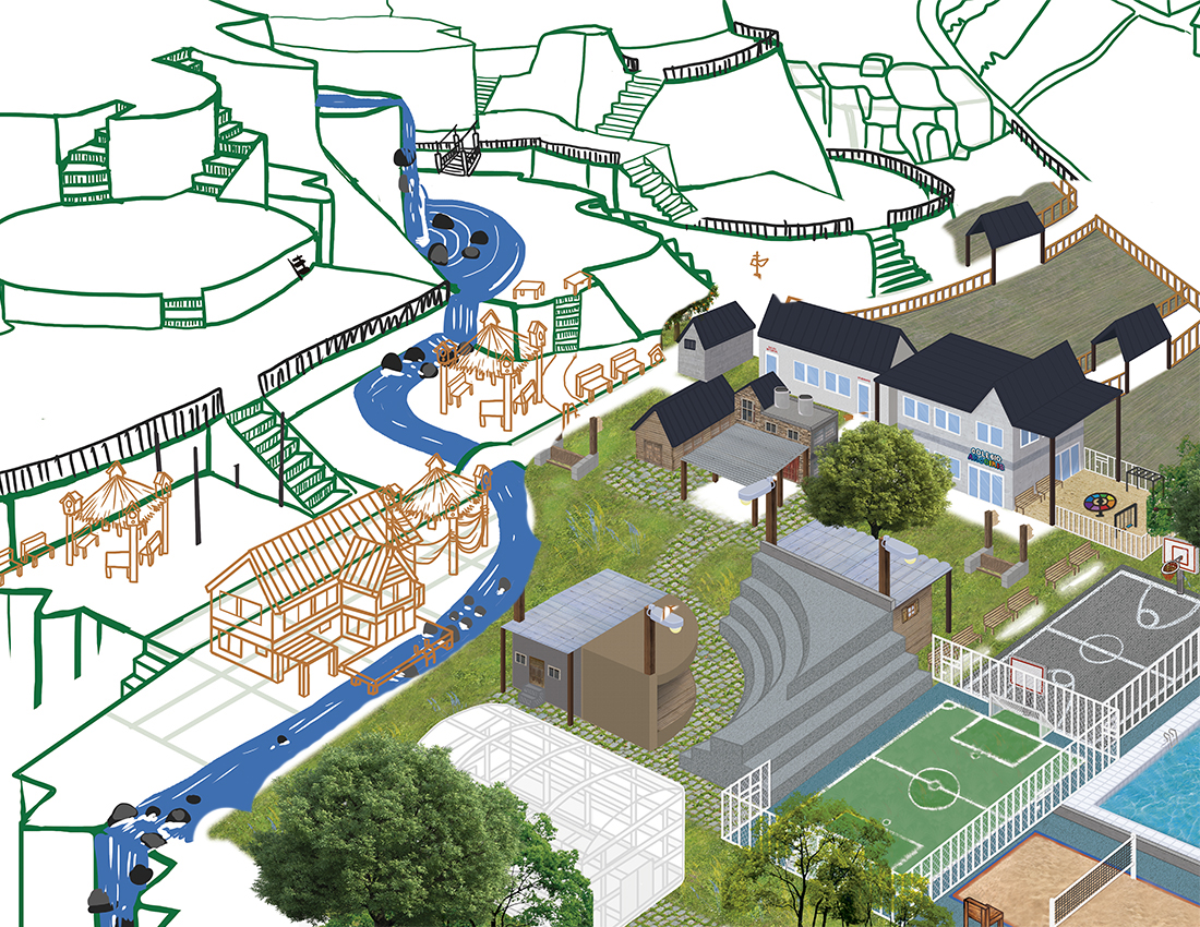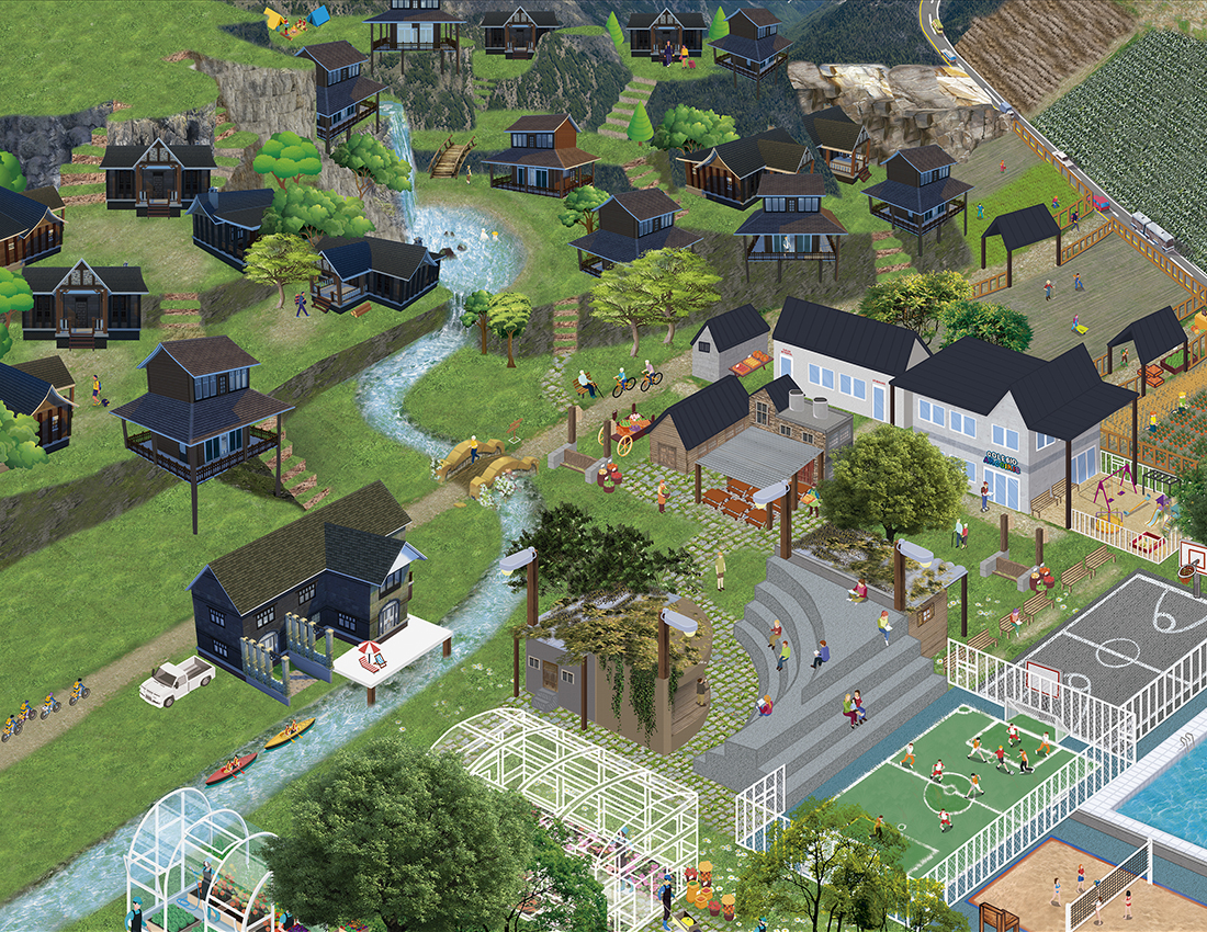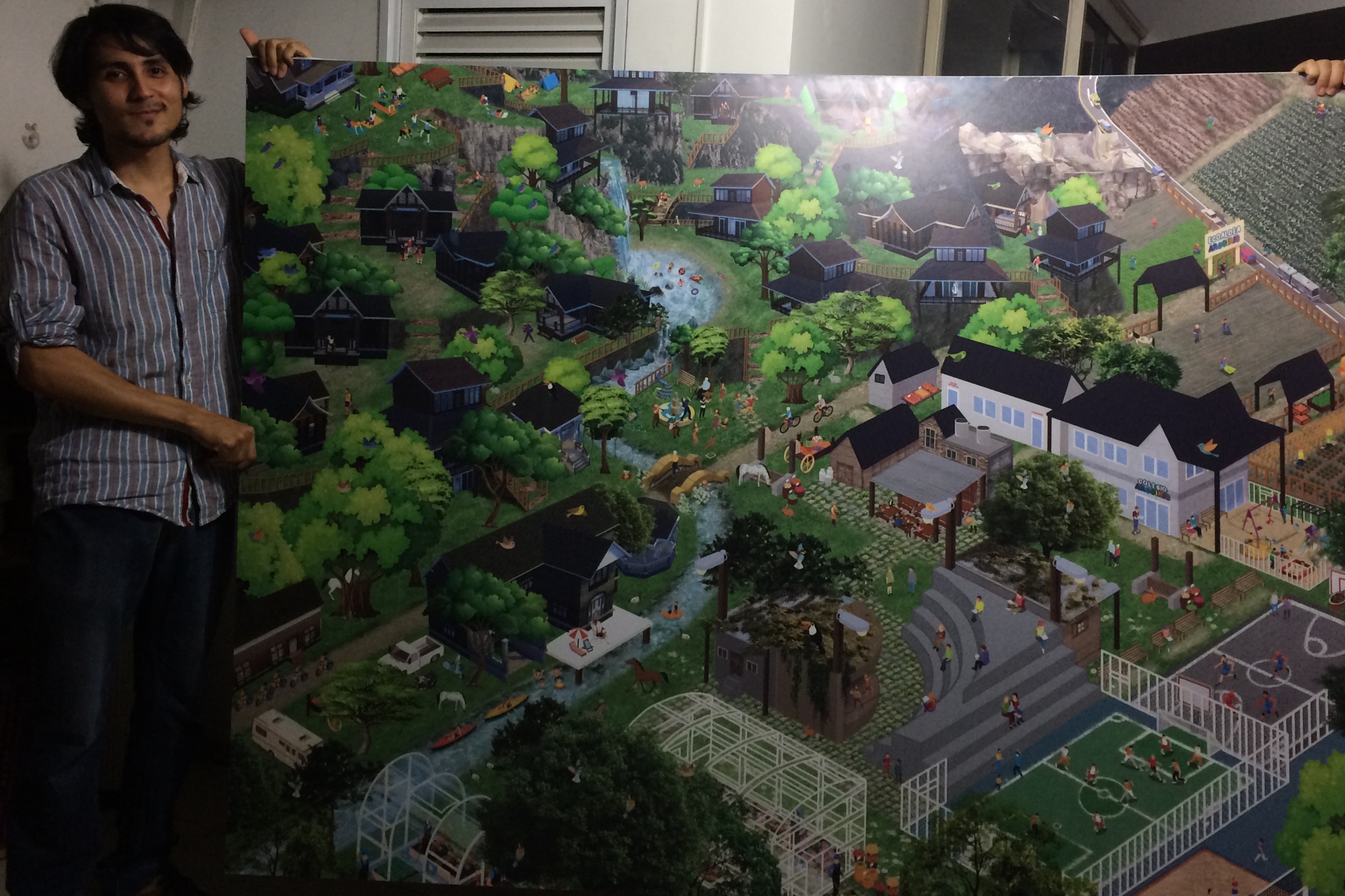 This job is very special, my uncle has a great idea for his retirement, he wants to live in an ecovillage and he asked me to draw a picture showing everything that this ecovillage would one day be.