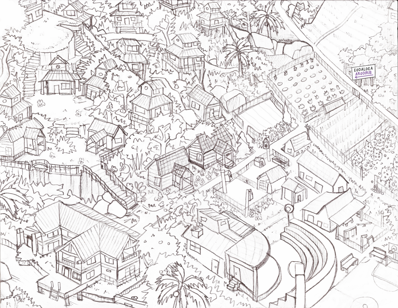 Este trabajo es muy especial, mi tio tiene una gran idea para su jubilacion, el desea vivir en una ecoaldea y el me pidio que hiciera un dibujo en donde se apreciara todo lo que esta ecoaldea seria algun dia.