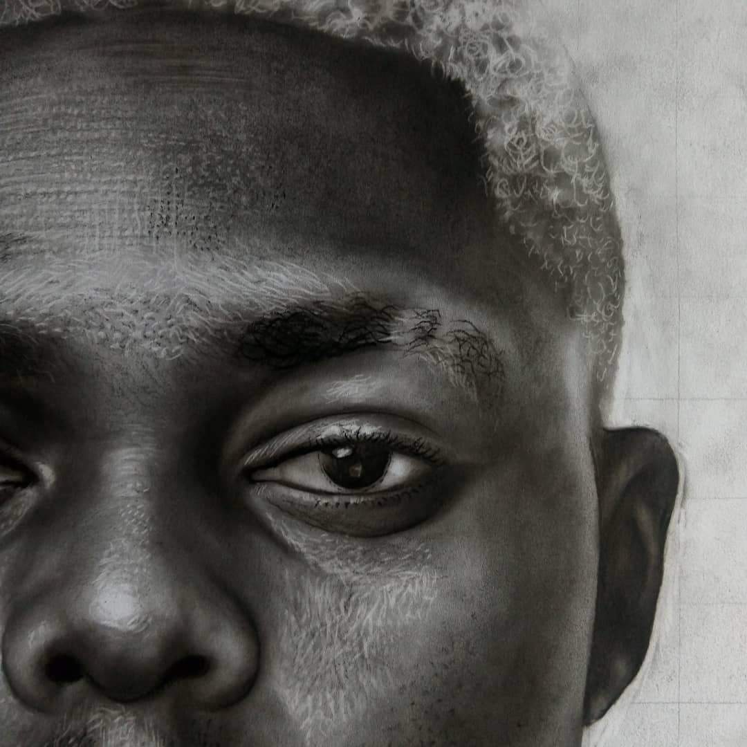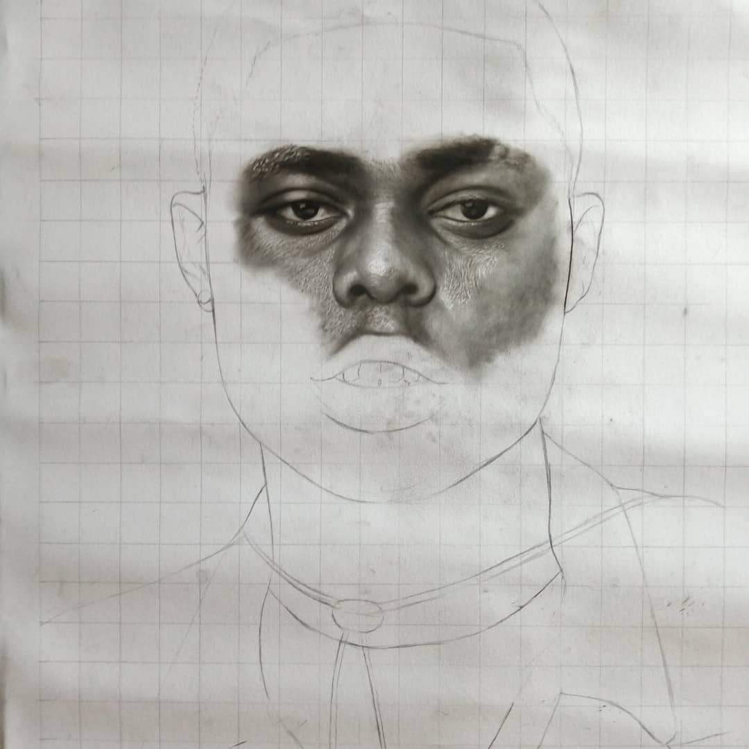 As we begin the new week, I begin with this portrait. I'm about currently 50% done. I'm using a 2B, 4B, 6B and charcoal pencil for this drawing. Here's the progress of the drawing. I should be done with this tomorrow.