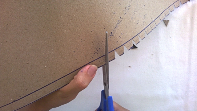 Step 5. Now, trim the top edge of the strip, in the form of eyelashes, and mark with the tip of the ruler all the folds, to facilitate the assembly of your hat.