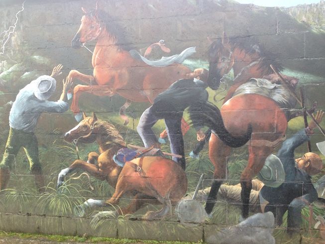 The first town mural was painted in December 1986 and since then over 60 murals depicting the area's rich history and beautiful natural scenery have been painted on walls throughout the town and buildings along the roadside. The murals attract an estimated 200,000 people to the town annually.