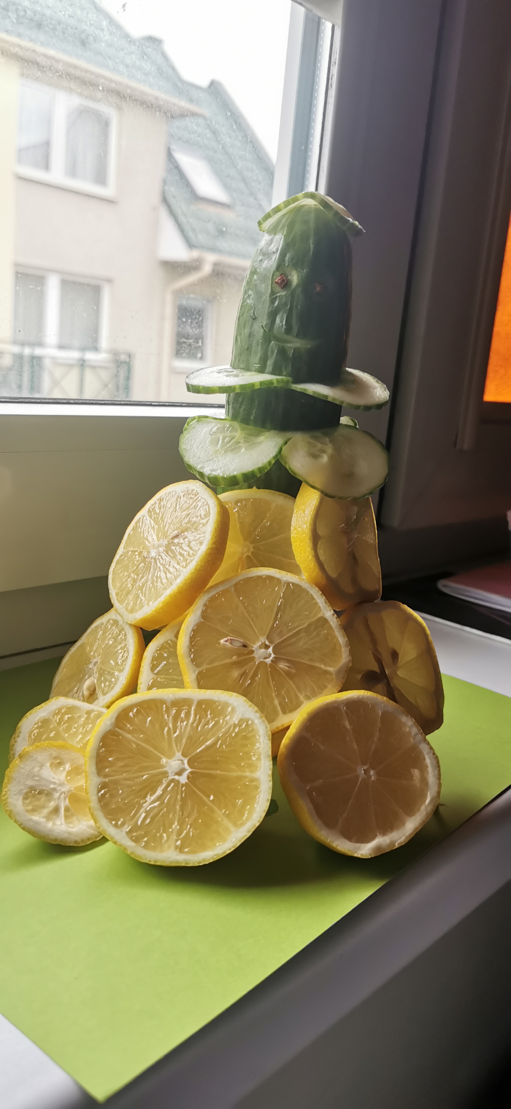 Hello guys! I decided to take part in the "Funny or Weird Vegetables" contest and create a sculpture using a cucumber and lemons.