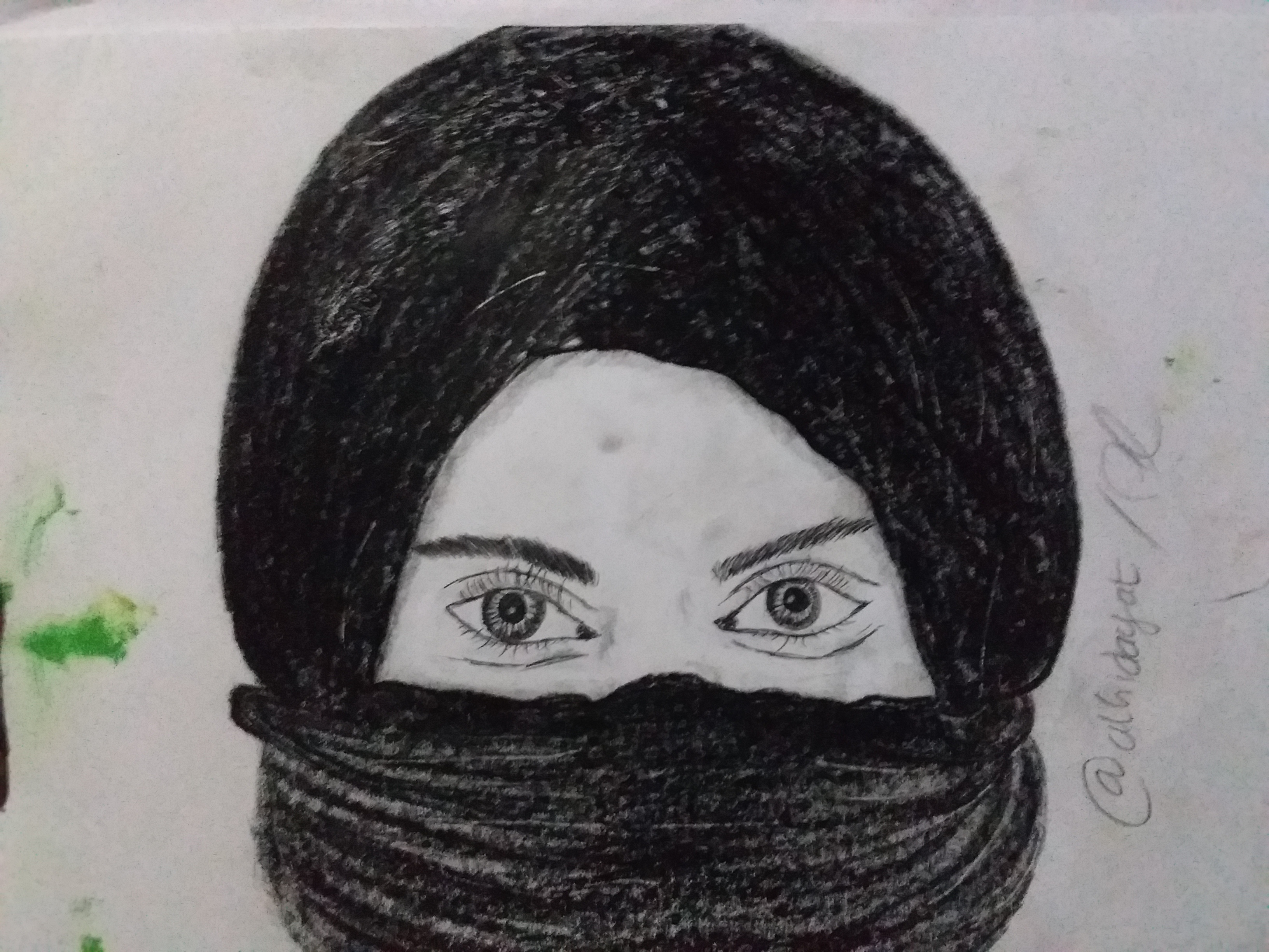 The next entry of the day is by @alhidayat. The artist created a unique portrait by choosing to obscure most of the subject's features under a veil, making the eyes stand out all the more.