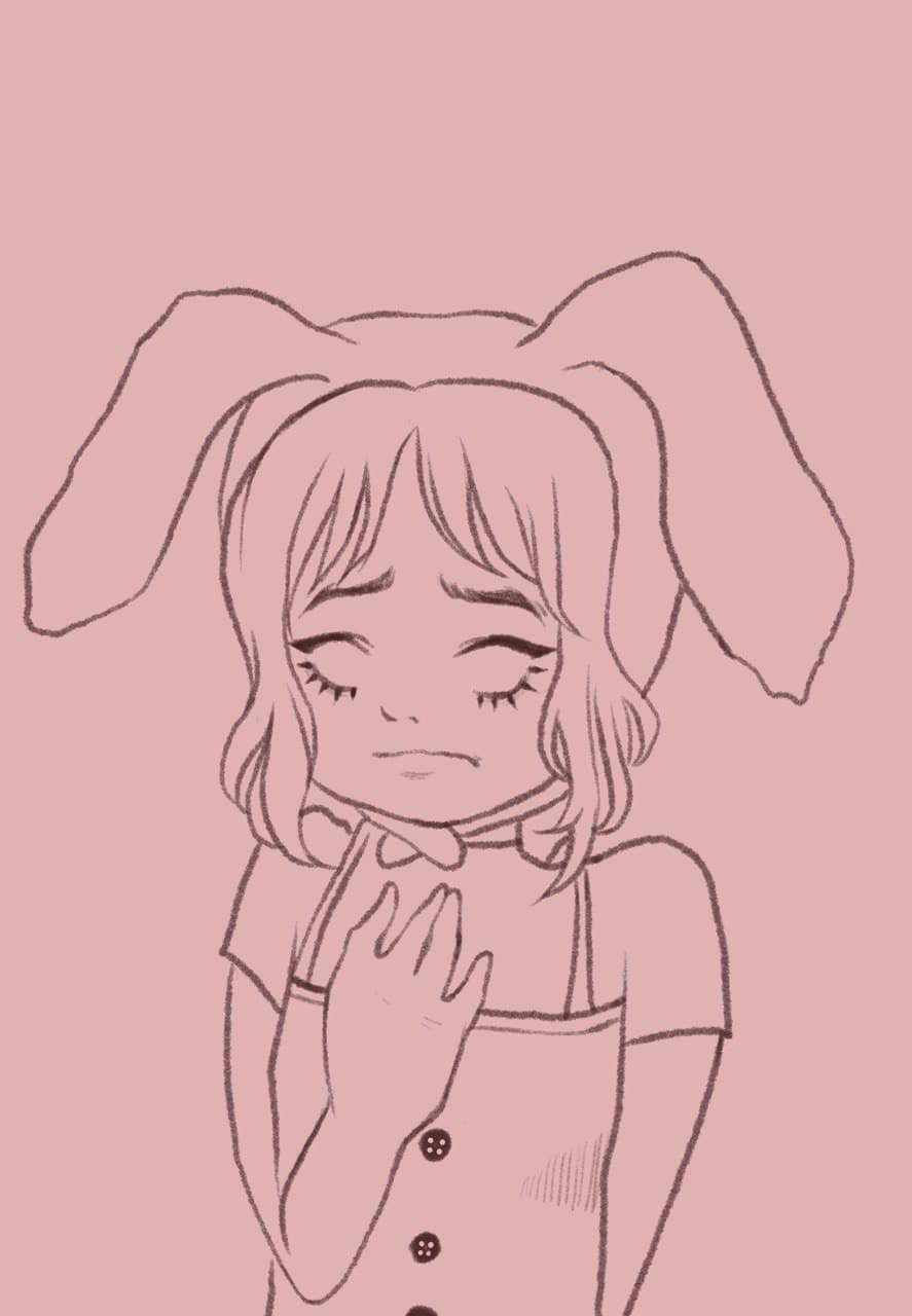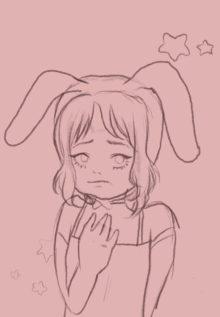 I started off with a sketchy line art on the second layer. The first layer was only the base color.