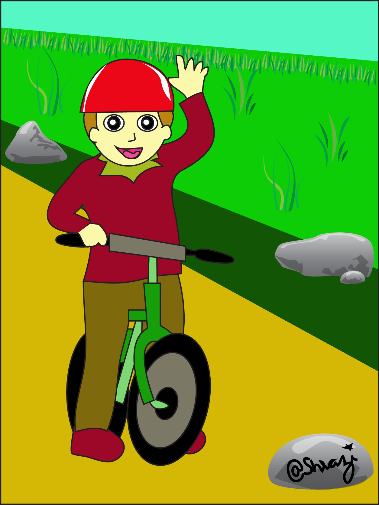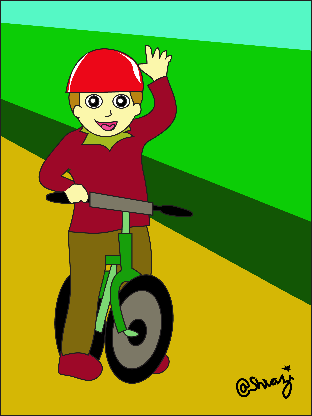 Hope you all having a great day, I am sharing here my recent illustration/drawing here, where a kid stop his cycle and Say HI to all.