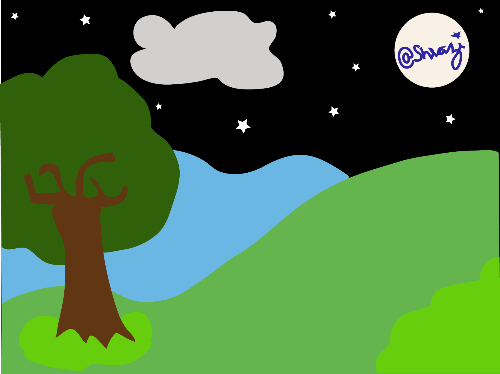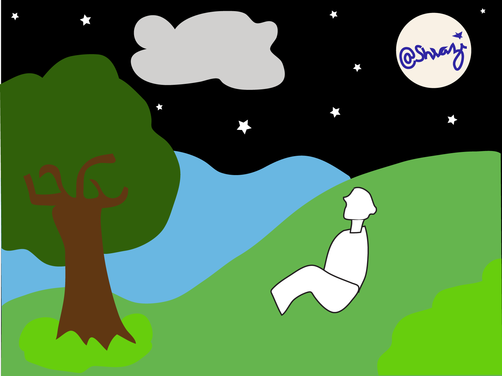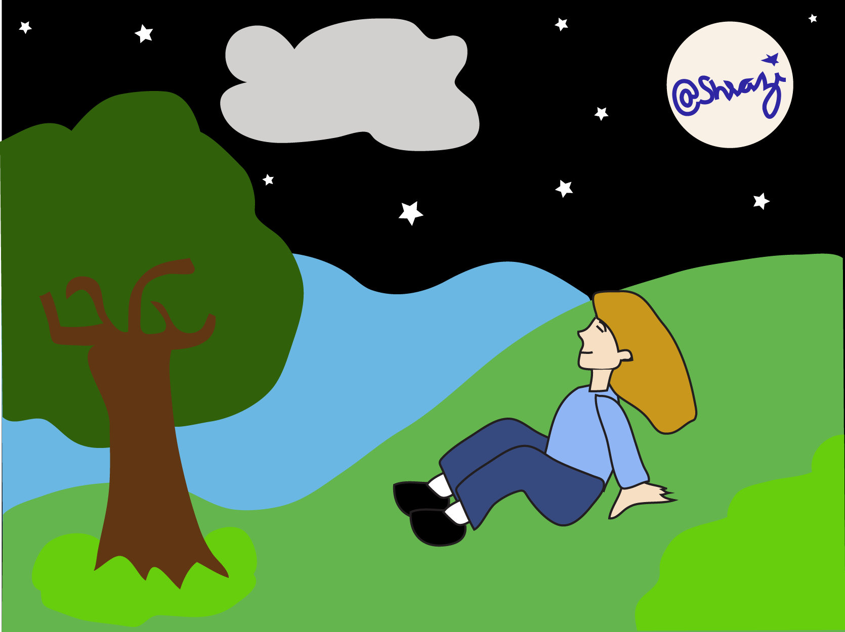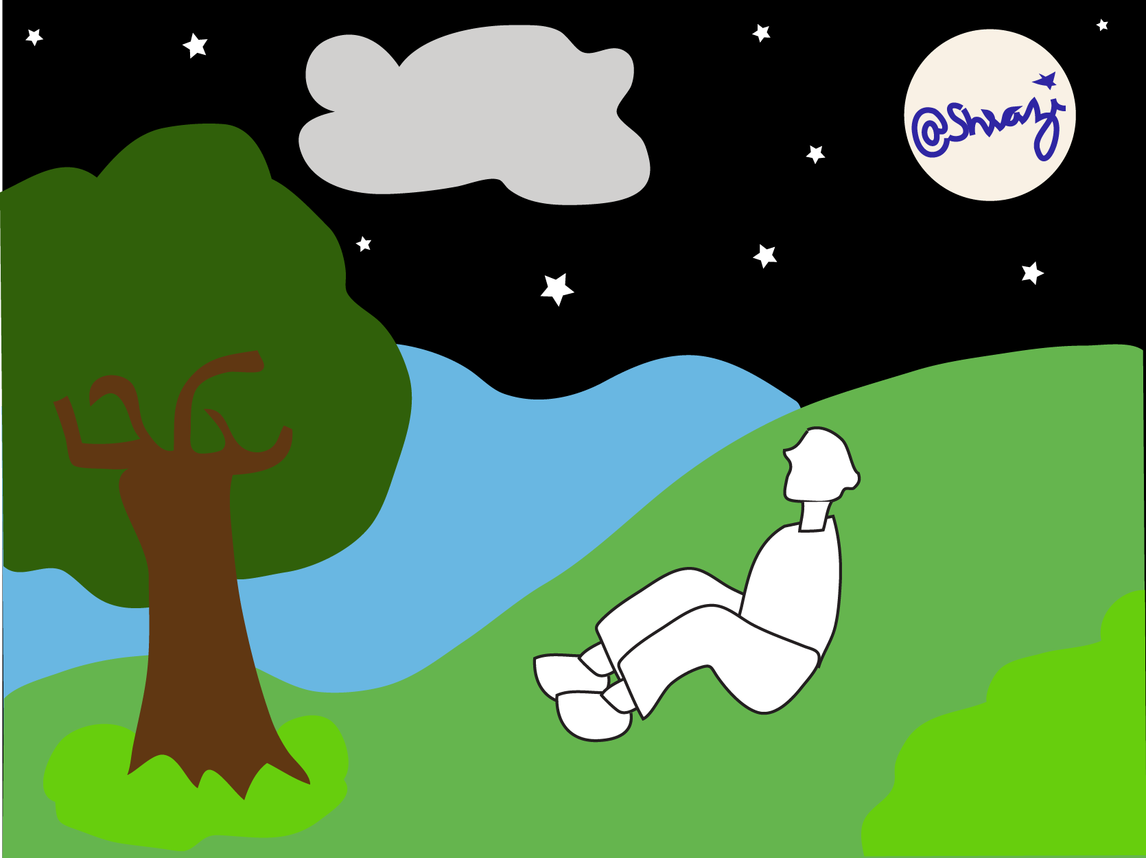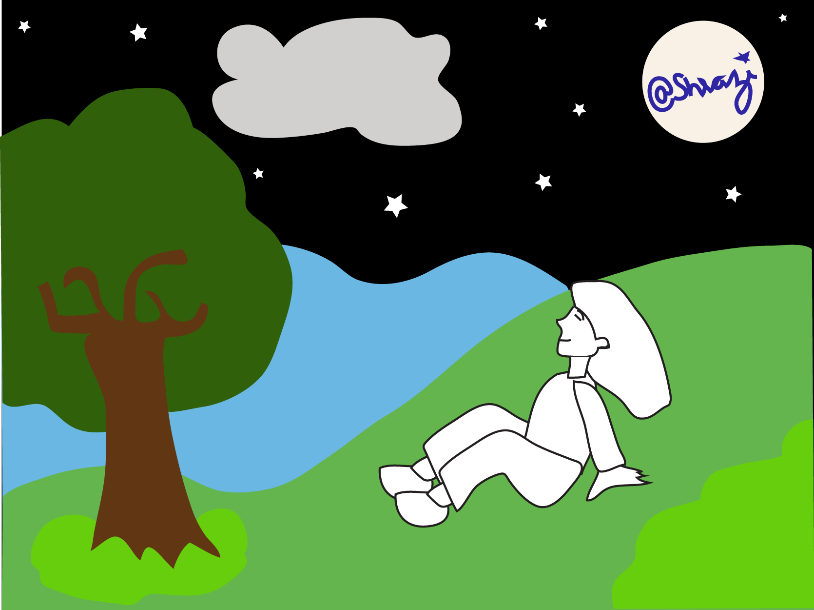 I recently try to draw/illustrate a person take relax in natural atmosphere at night.