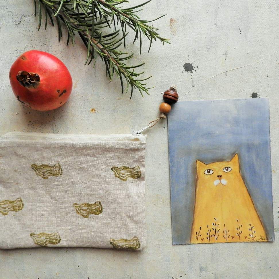 One of the things I love to do is to take new photos of my tiny paintings. I use to do it because selling online I need to share some "fresh" images of my works and I also love to take pics of my tiny oil paintings on paper (A6 size) with something I created with my hands like my pencil cases. 🌸