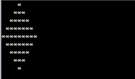 I want to write a code to print rhombus with use C program language.This code would used six for statements.The previous three for statements be used to print the upper five lines.After three for statements be used to print the following four lines.code as follows: