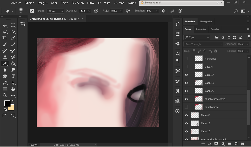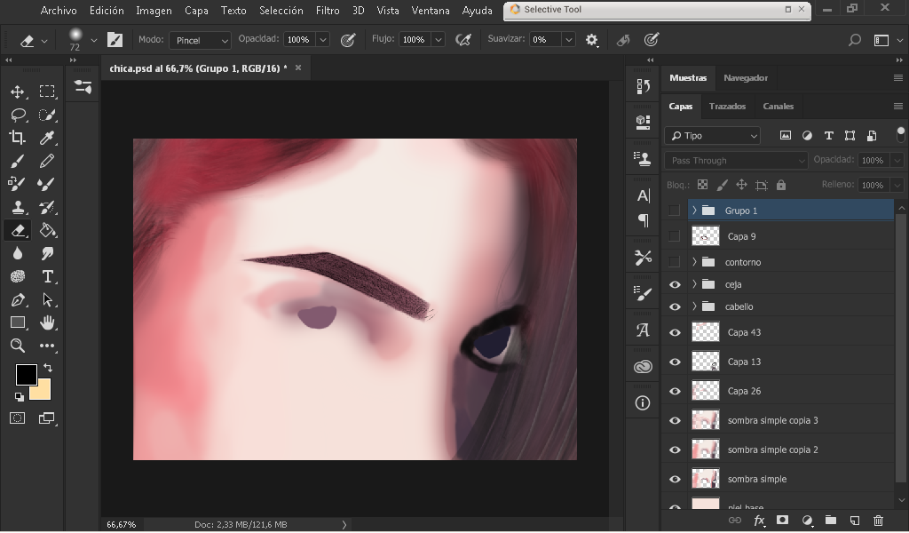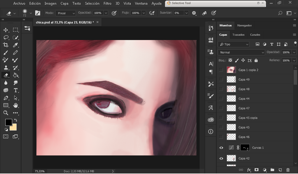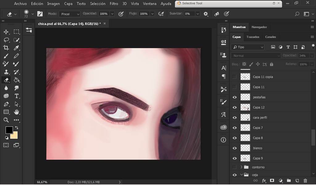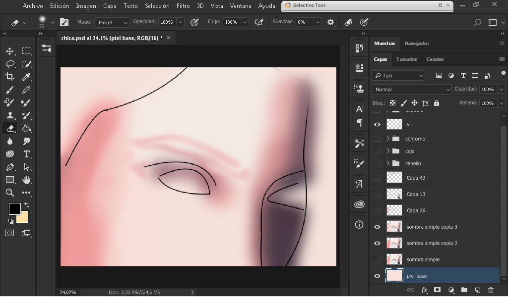 As you can see in the image I took a color sample of the face with the dropper, and I began to define a little where each color goes by defining a little the edges of the eye and face.