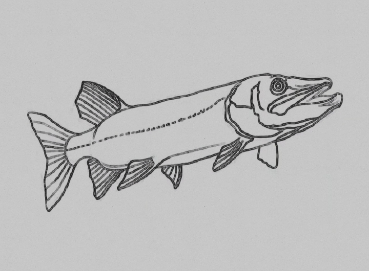 A large fish figure has been drawn. It is enhanced by its imaginary beauty.All the materials needed to draw it are given.