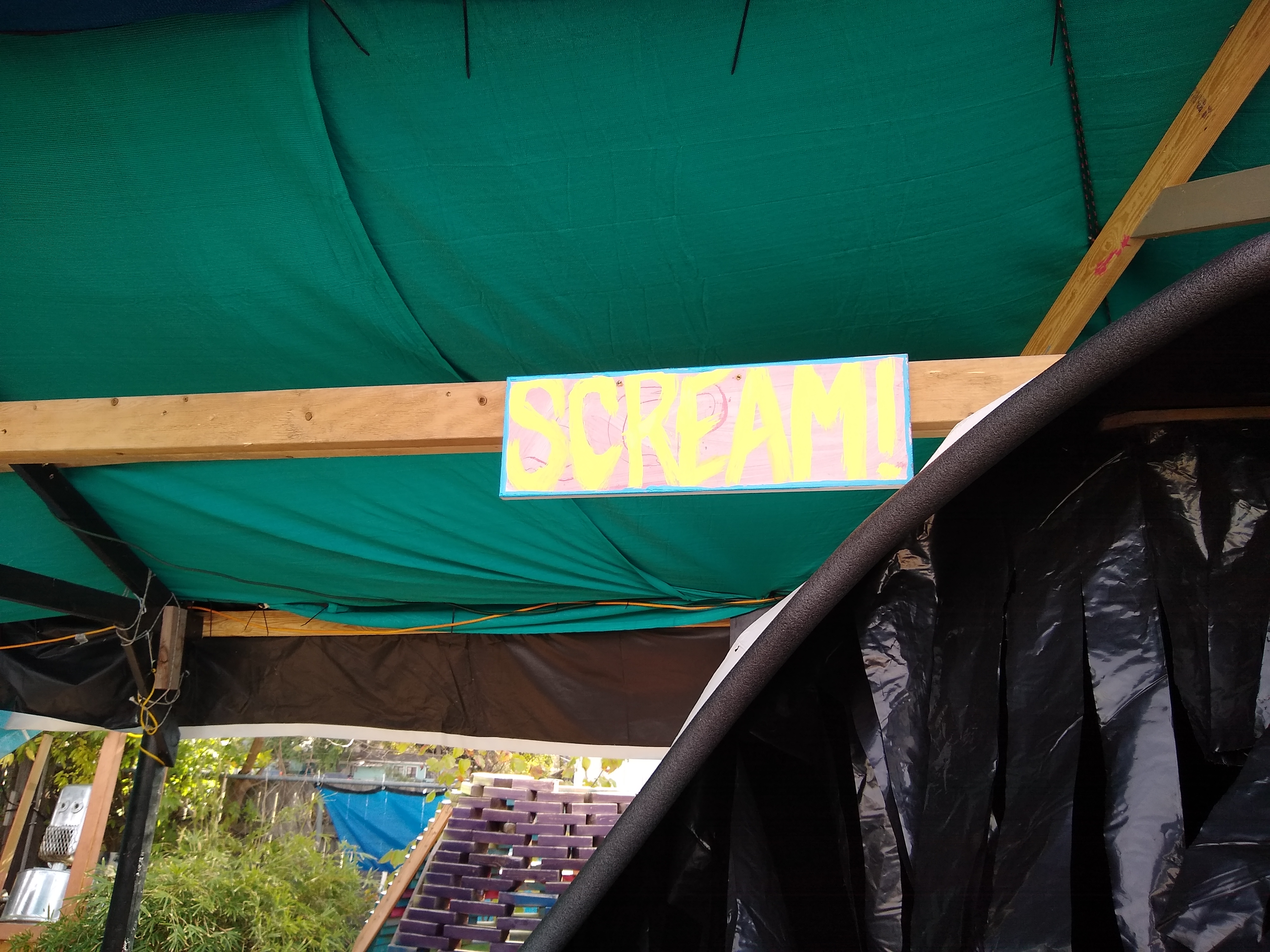 Projections are audio reactive to the scream/sound, you can get a more complete idea of the mechanics of it at the end of the documentation video I made here below.