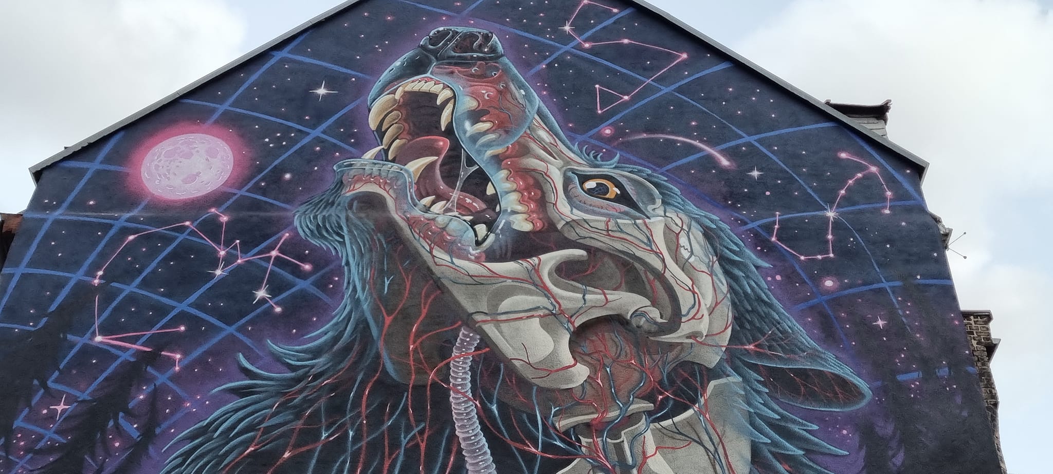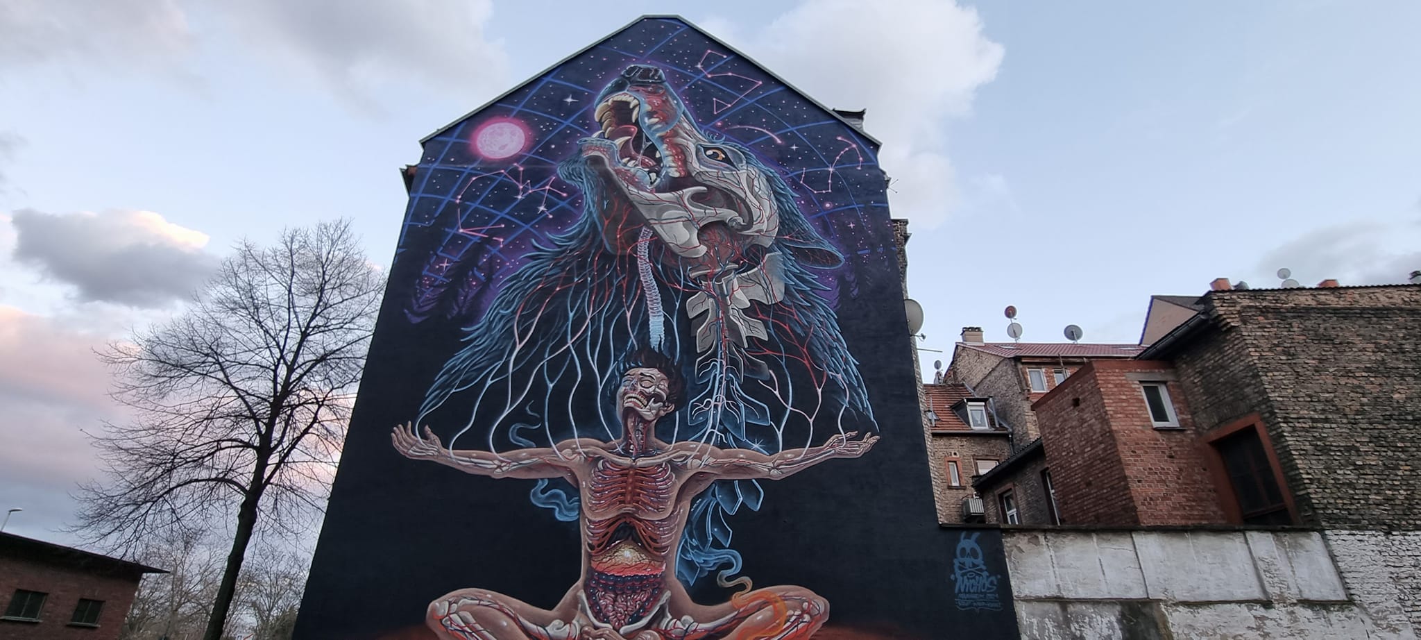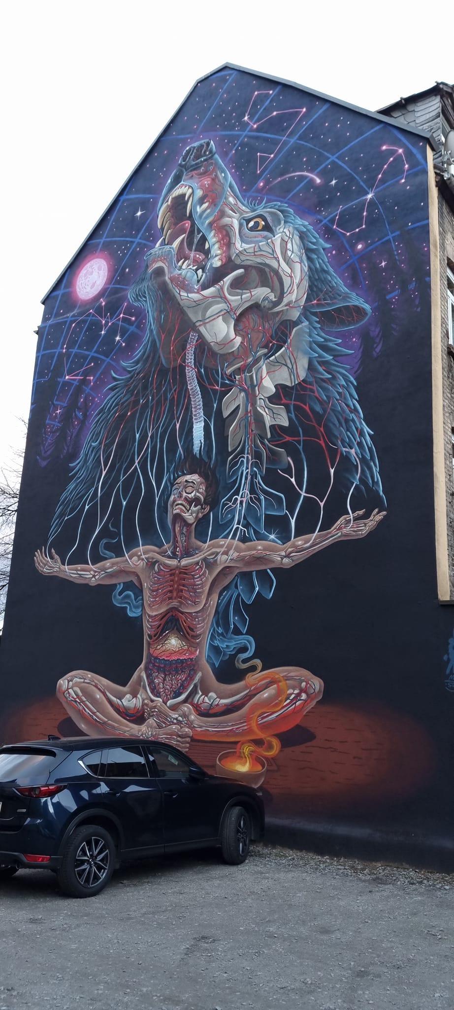 Dieses Mural / Graffiti wurde im Jahre 2021 gesprayt vom Künstler NYCHOS im Auftrag Stadt.Wand.Kunst. und befindet sich in der Neckarvorlandstrasse 17 - 19 Mannheim ( nähe Stadtteil Jungbusch ). Dieses Graffiti wurde etapen weise Tag für Tag erstellt. Mit einer Elektronische Hebebühne und viele Spraydosen machte er sich ans werk. Ich war heute ( 30.1.2022) an der Mensawiese und in Jungbusch unterwegs, hier ist der Mekar der Straßen Graffiti in Mannheim. Beim nächsten mal nehme ich mehr zeit mit, den man kommt hier nicht nach um alles abzulichten. Es gibt hier viel zu viel was zu sehen.