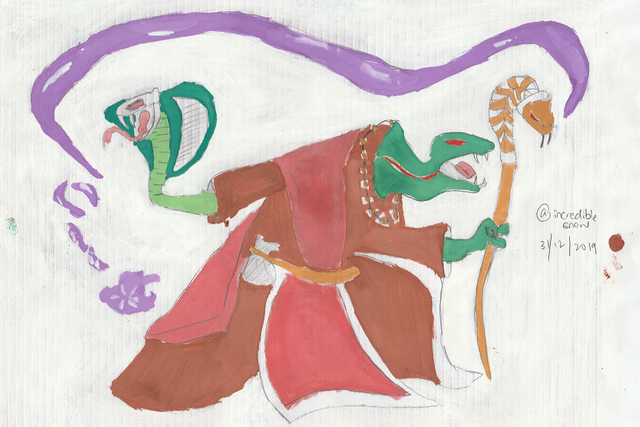 I draw a Cobra snake with magic spell instead of its left hand! Thanks!