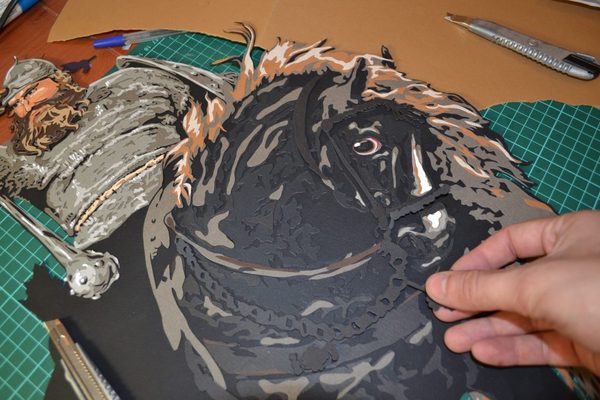 The material of my paintings is cardboard, and the most varied. Once I thought of doing a portrait in an unusual technique: I decided first to cut out the silhouette, and then draw the traits with pencils and pens. I tried, I thought that you can do without pencils and pens at all - cut everything. So my first picture turned out. Then, from time to time, he made such pictures as a gift, made to order, and a year ago he tuned in to create serious paintings, to his own collection.
