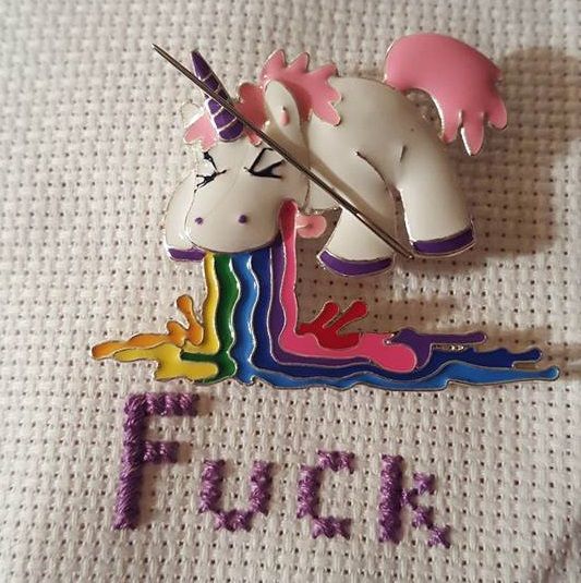 There is something to be said about being able to stab something 4,000 times and not go to jail, it is soothing as hell. I sublimate my rage through crafts and it is the best. Taking a hobby that you usually associate with sweet little old ladies and sprinkling swear words onto is the kind of thing I live for. The contradiction! The aesthetic! THE FILTH.