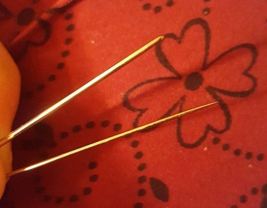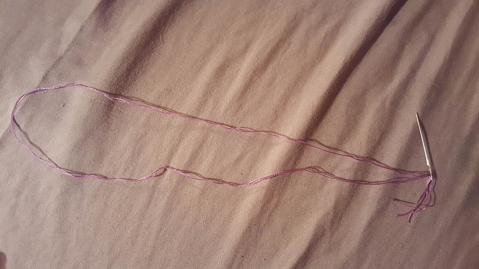 Split off two strands from the six that make up the floss. You're going to now double them and thread your needle.