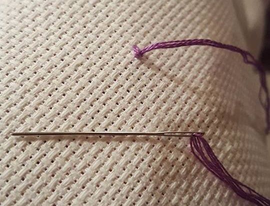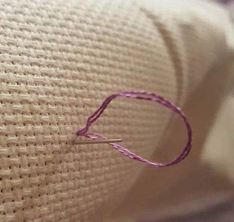Now select your starting point and press your needle through the back of the fabric to the front. Make sure not to pull to hard, you need the tail back there to secure!