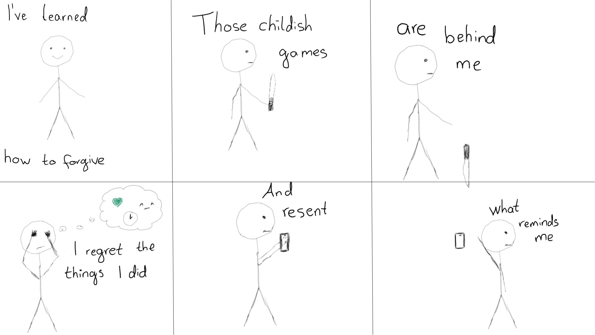 It's been a while since I used a song as a template for some (shitty) sketches, but the lyrics here have been very straightforward, which allowed me to draw a little comic. As usual, it helps to deal with some things, although the things being dealt with in this case are already a bit older, from December/January. Still, it takes a while to process.