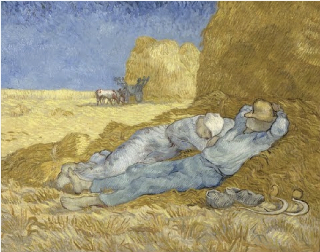 반 고흐, 낮잠sunrisehae (61)in #art • 5 years ago 이번에도 반 고흐 입니다. 고흐가 존경하던 밀레의 그림을 묘사하여 그린 작품입니다. 다만 원작을 그대로 그린 것은 아니에요. 고흐가 좋아하던 노란색, 파란색 등을 사용하여 밀레와는 다른 언어로 낮잠자는 농부들의 모습을 그려내었습니다. 평화로운 자연과 열심히 추수하고 낮잠자는 부부의 모습에서 묘한 안정감과 아름다움이 느껴집니다. 밀레의 원작도 찾아보세요 :)