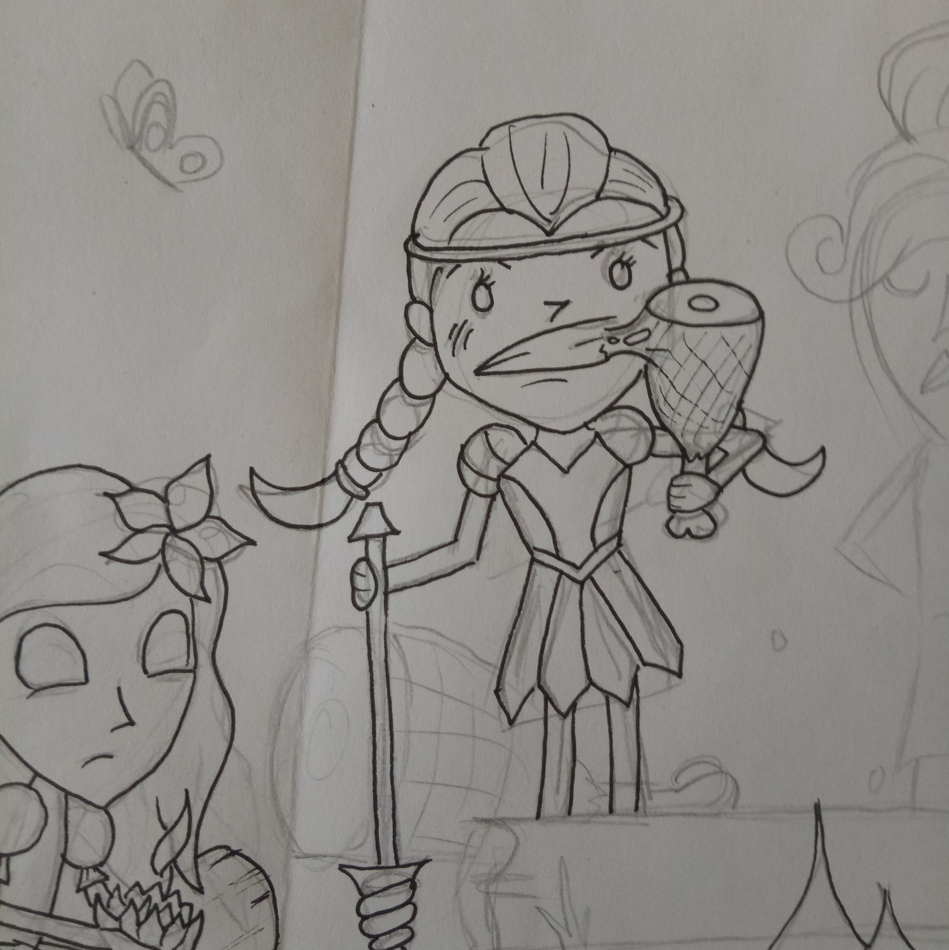 I wanted to give a little bit of variety, so I added armour and items to different characters. Then I straightened up the lines ready for going over with a marker. I worked from the front to the back, because a mistake I tend to make a lot is accidentally drawing something in the background first.