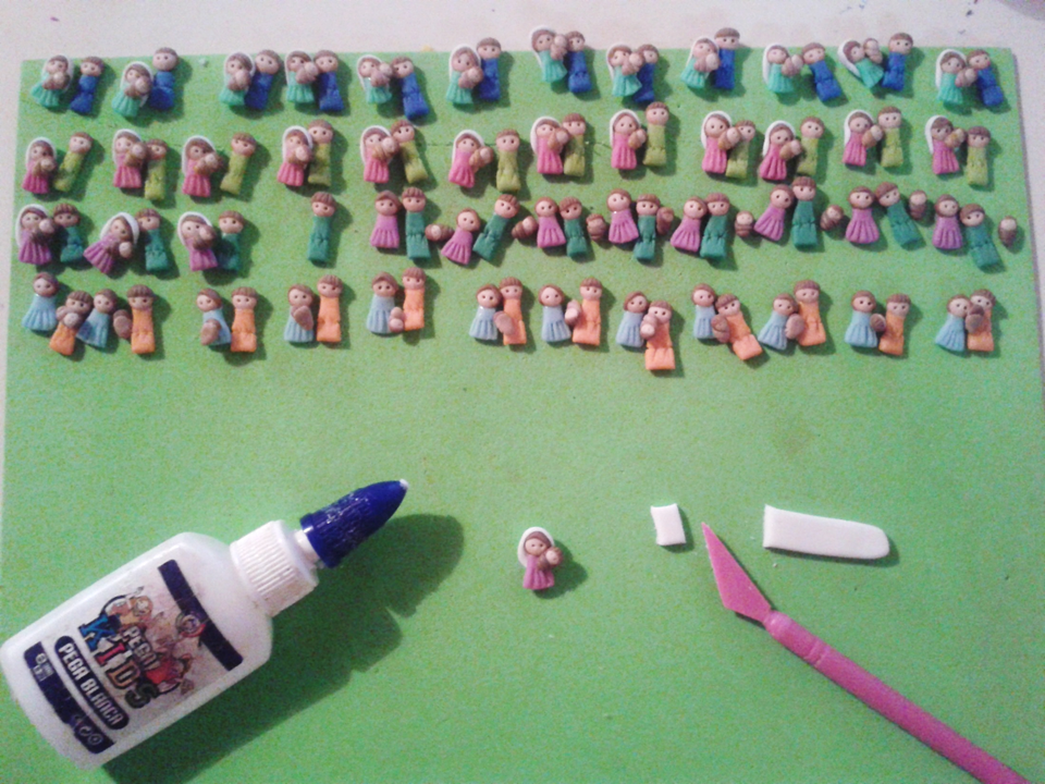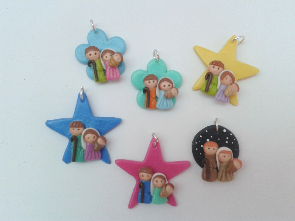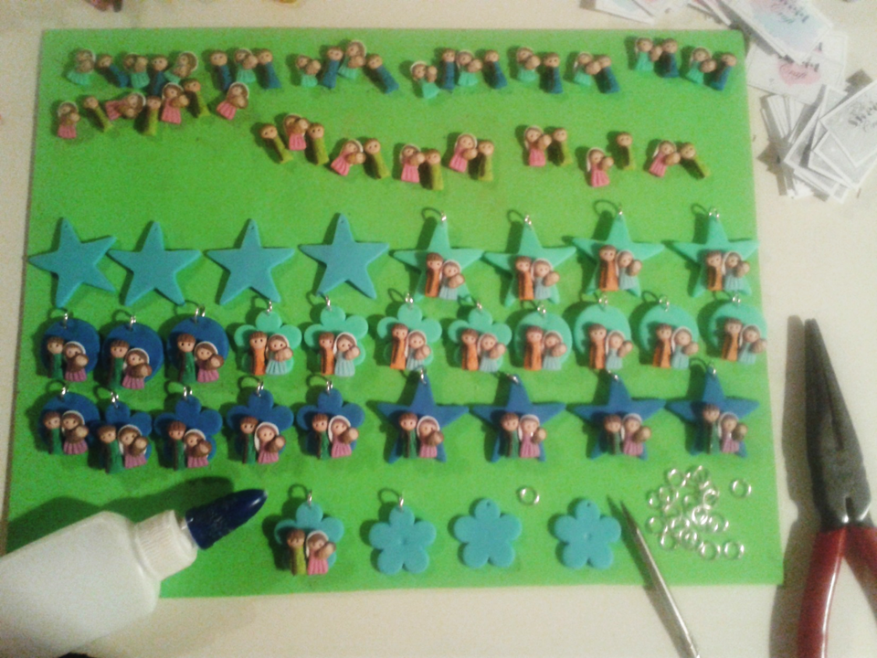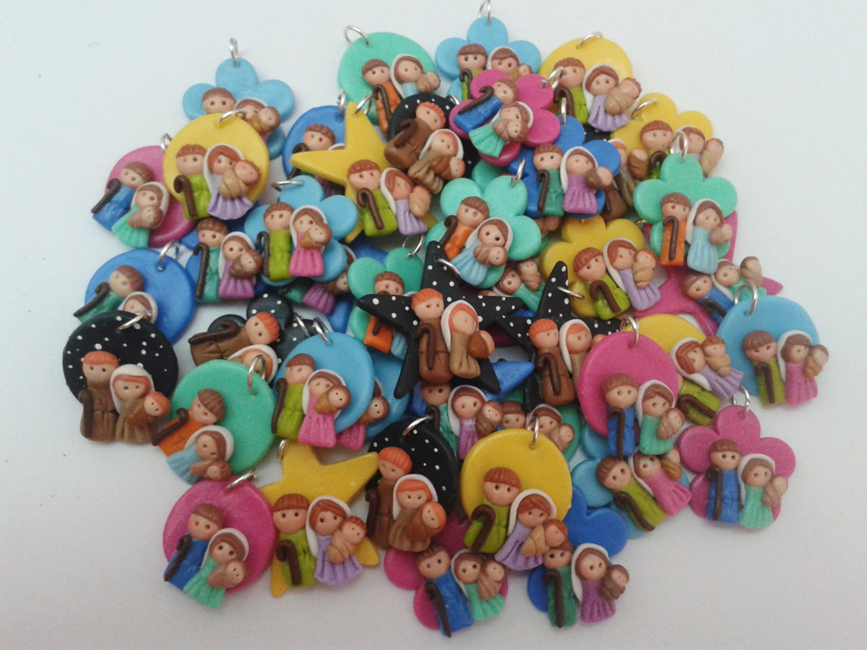 ¡Listo! ya tenemos nuestros dijes de nacimientos. Para hacer estos diseños tan pequeños en grandes cantidades lo mejor es irlos haciendo en serie, un día hacemos todas las caritas, al otro todos los cuerpos, al siguiente los accesorios, luego las bases y el ultimo día se arma todo. Es importante respetar el tiempo de secado para no arruinar lo que hemos venido trabajando. Yo soy muy ansiosa, pero he aprendido que mejor esperar para algo bueno que apresurarse y obtener algo malo o que se te daño el esfuerzo realizado.