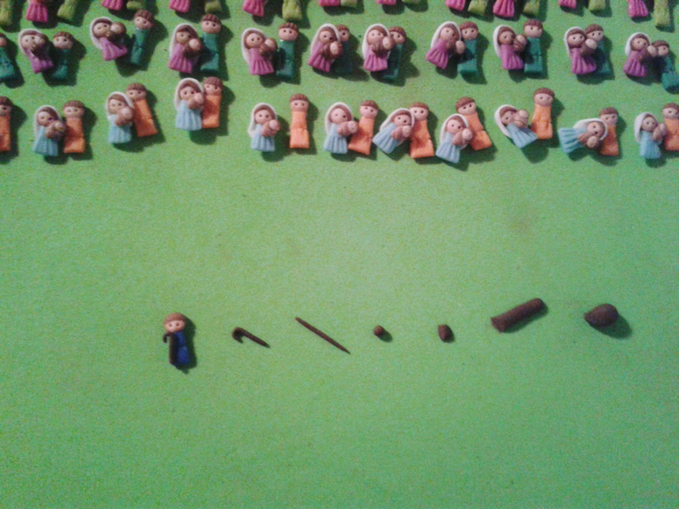 Nos acercamos a diciembre, a la navidad, la cual es una época de diversas emociones; alegrías, tristezas, nostalgias y nuevas esperanzas. Actualmente en mi país es complicado dar regalos, generalmente tenemos otras preocupaciones en la cabeza, pero igual dejamos de lado todo lo malo o difícil para demostrarle a los que amamos nuestro afecto con un pequeño pero significativo gesto. Los gestos se hacen de acuerdo a la ocasión, así que en esta época me encargaron nacimientos. Este es el resultado final, un grupo variado y numeroso de nacimientos, ¿Quieren ver como se hacen?
