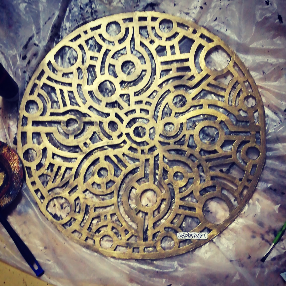 what is that sculpture's of? metal? :O LOOKS SO COOL