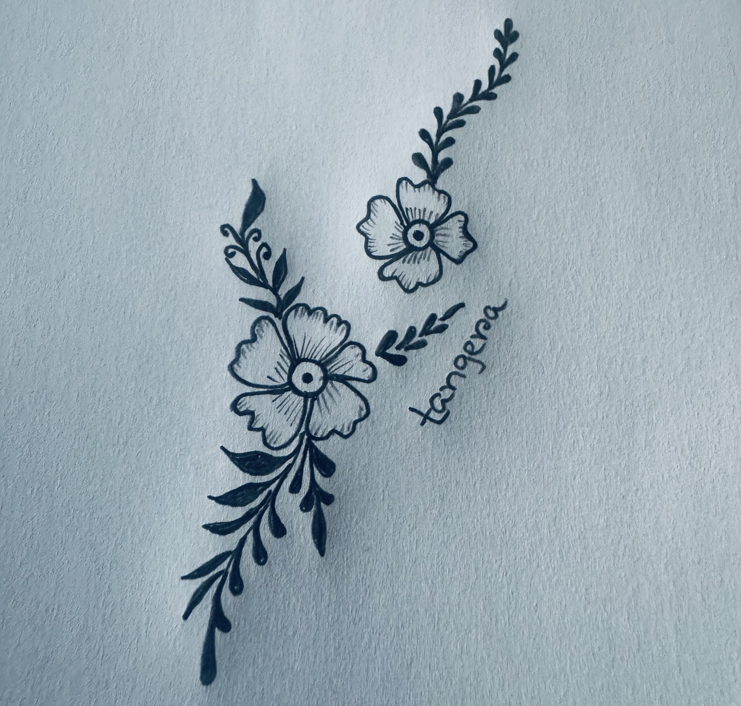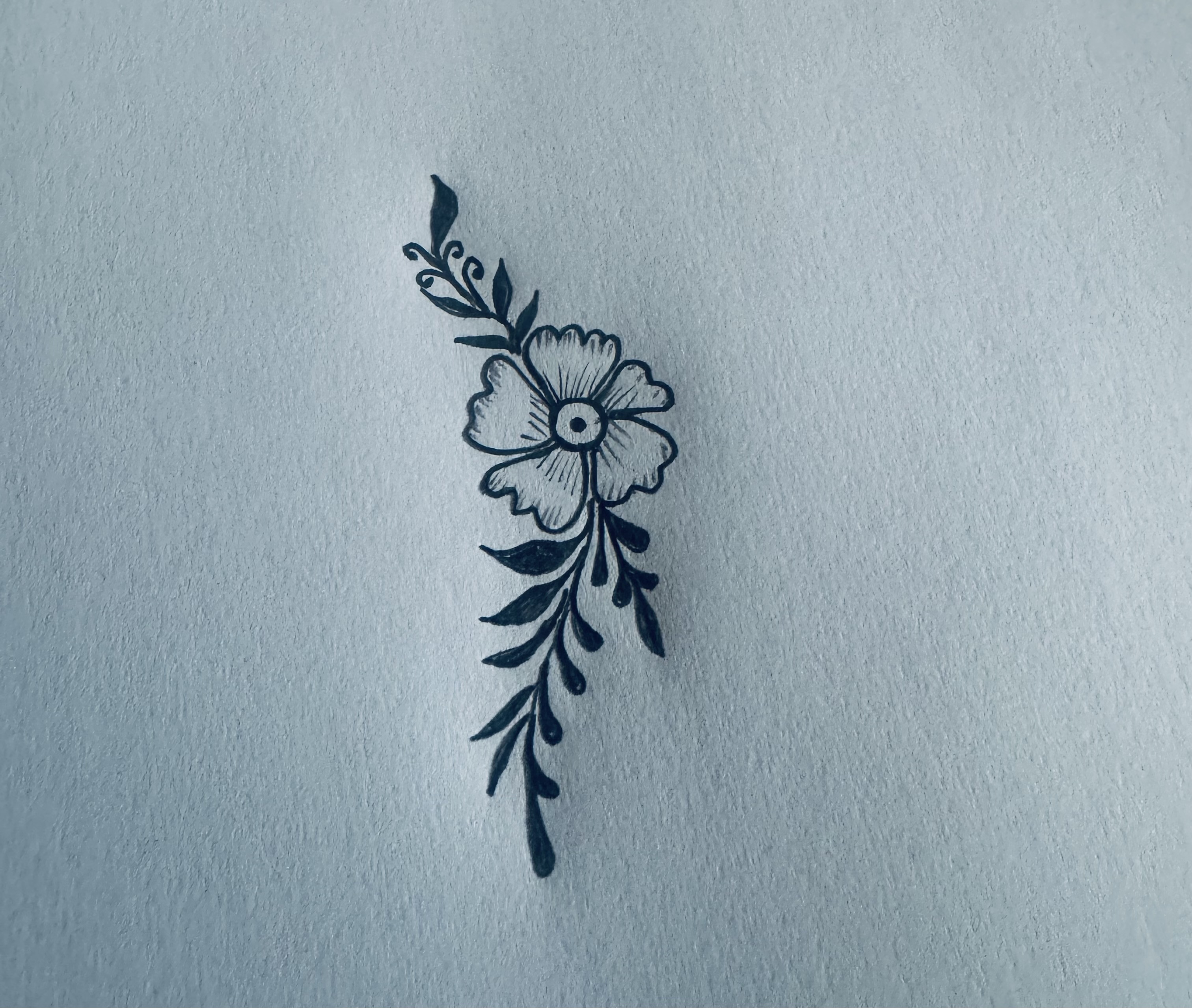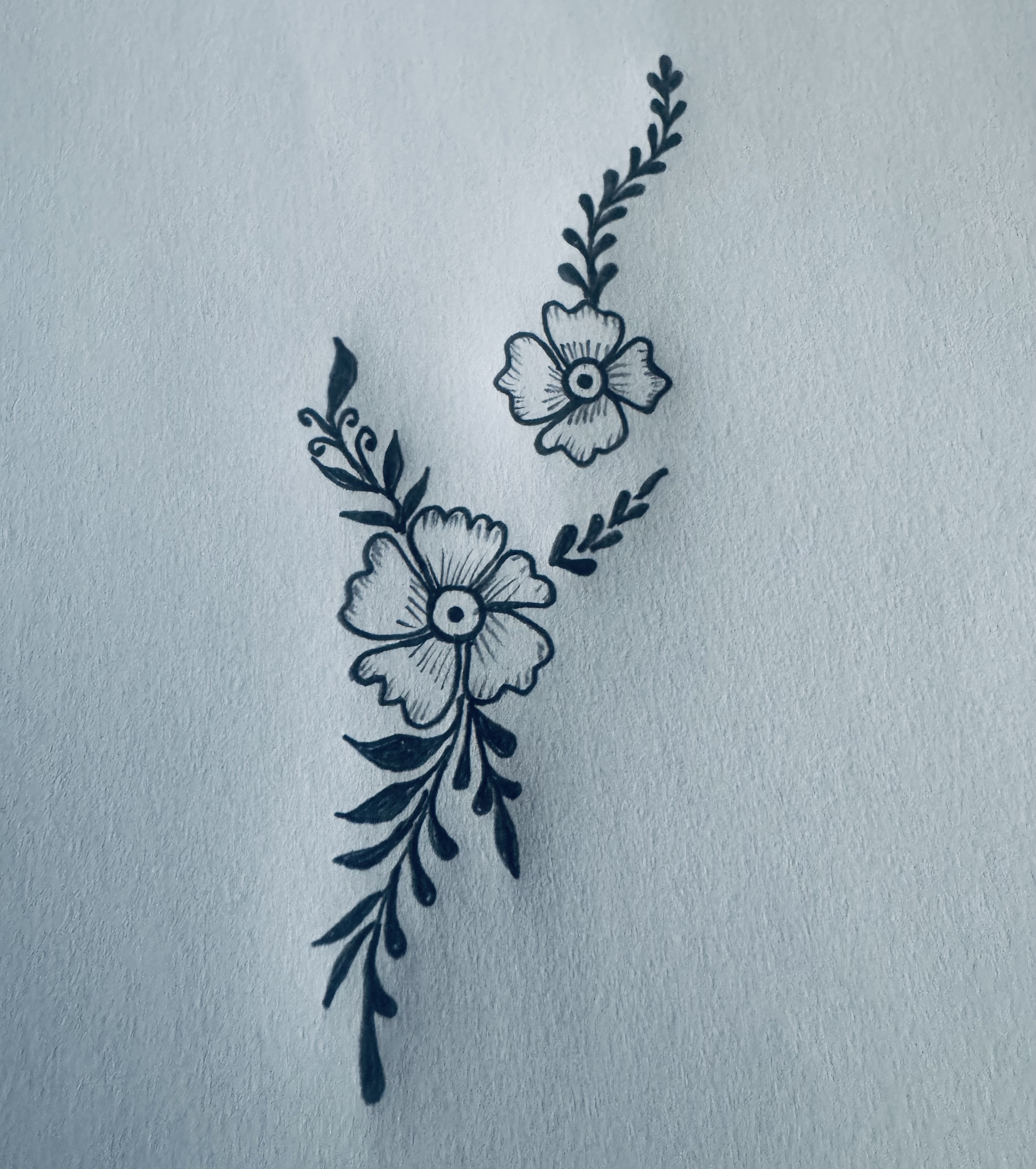 এরপর ফুলটির উপরের দিকে আরও একটি ফুল এঁকে তার উপরে কতগুলো পাতা এঁকে আমার অংকনটি শেষ করেছি।