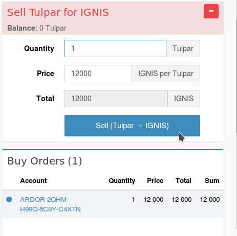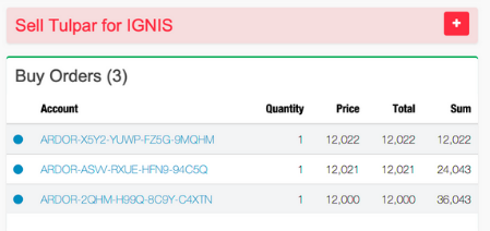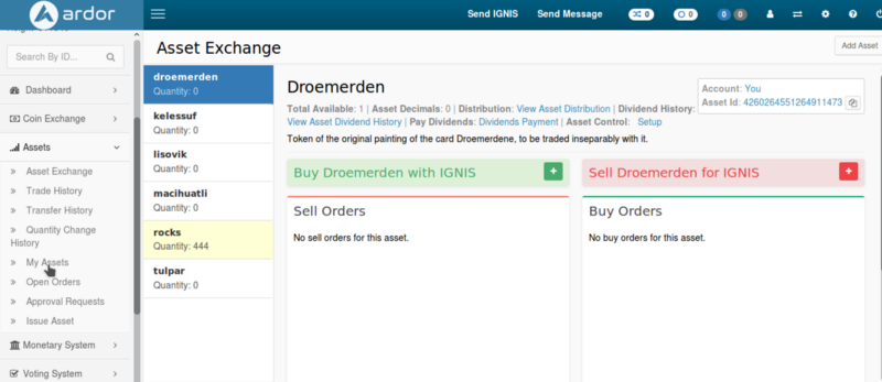 By simply adding our token ID to the Asset Exchange’s search engine, our potential buyers could already see the markets of our works on the Ardor client, which would look like this: