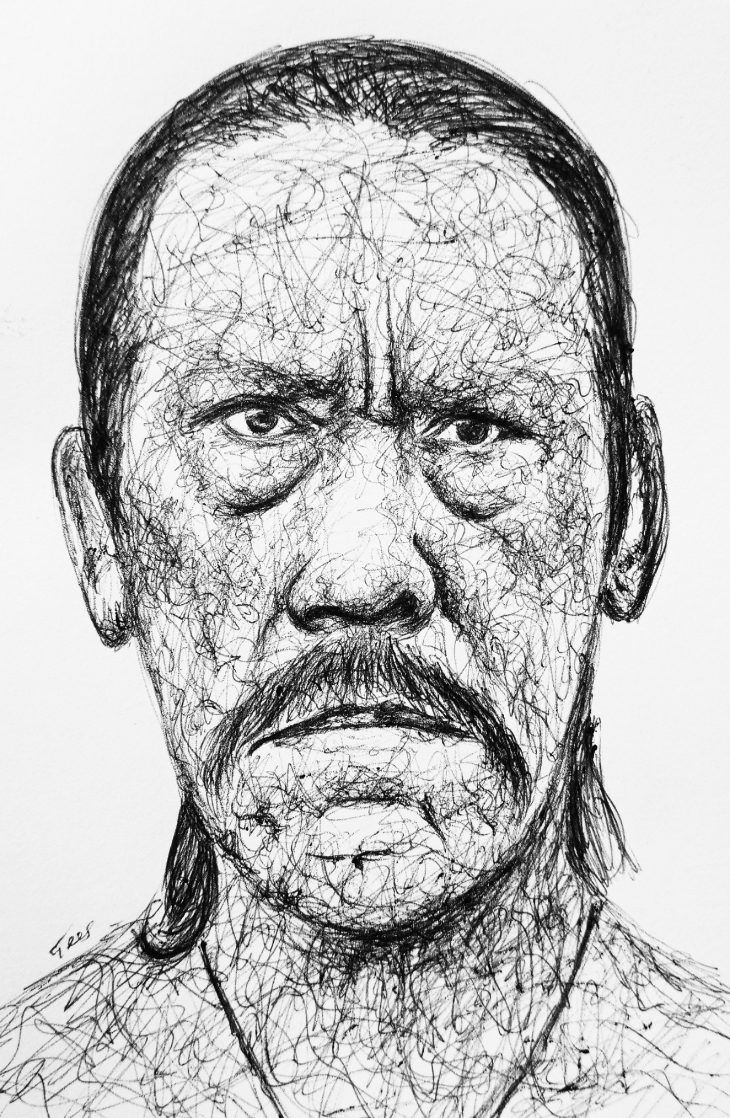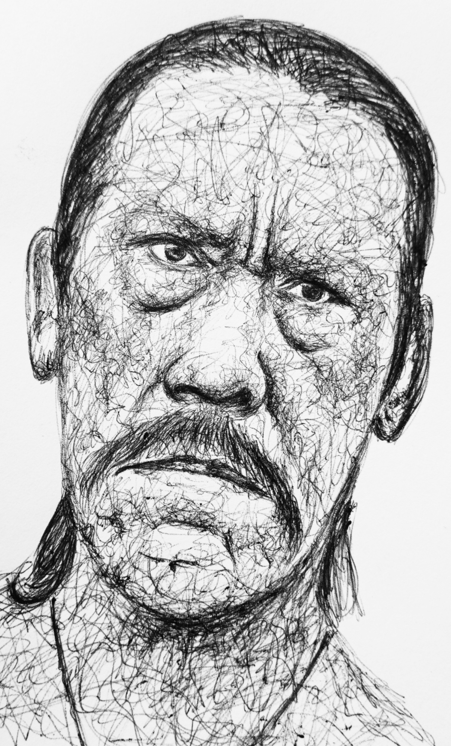 portrait of the American actor, Danny Troja. He's a renowned American actor globally known for his role as Machete in the the movie, "Machete Kills". Before making this drawing, I used to think he was Mexican but I understood he's related to Mexico and his parents were Mexican American. I made this scribble drawing of the actor today as a fan art. I hope you love it.