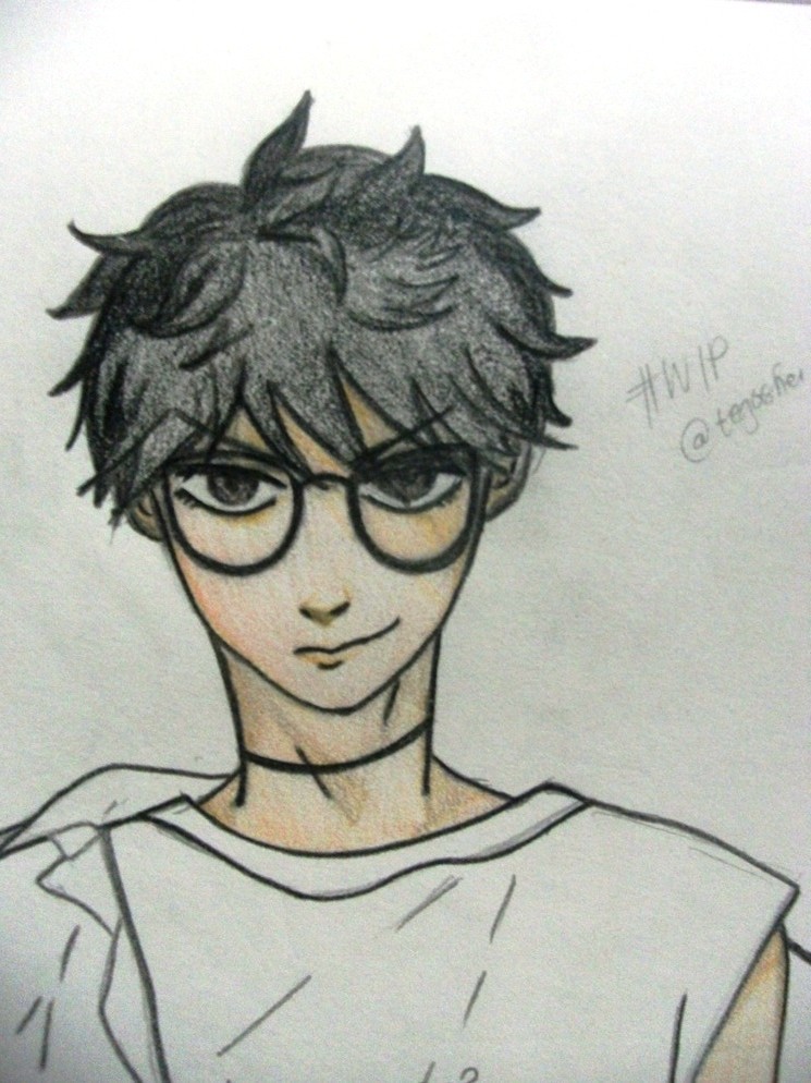 Following the neck, I colored his arm *(the other visible part which I'm going to color with the same colors. After which, I took out my black colored pencil and colored the hair... looking out at the different shadings.