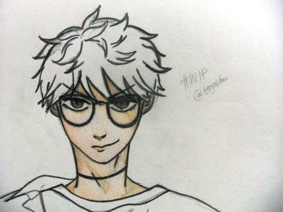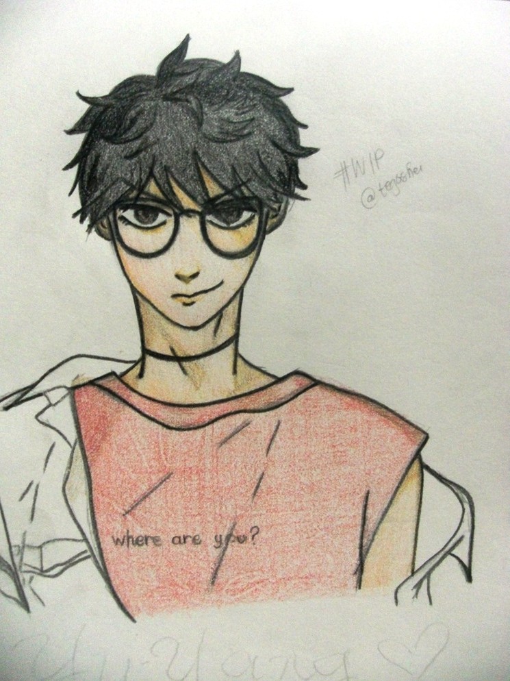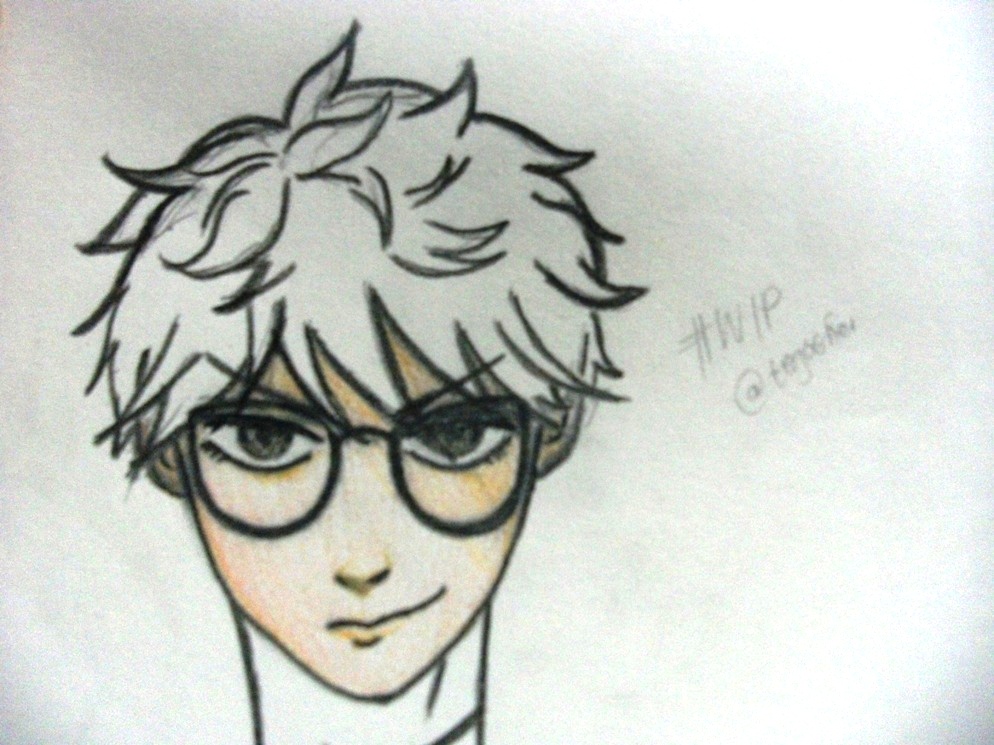 This was the final sketch which I posted in my WIP post yesterday. What I did after that was to outline the lineart with black colored pencil. Unfortunately, I missed to take a picture of the lineart, so let me show you the process in which I colored the face first.