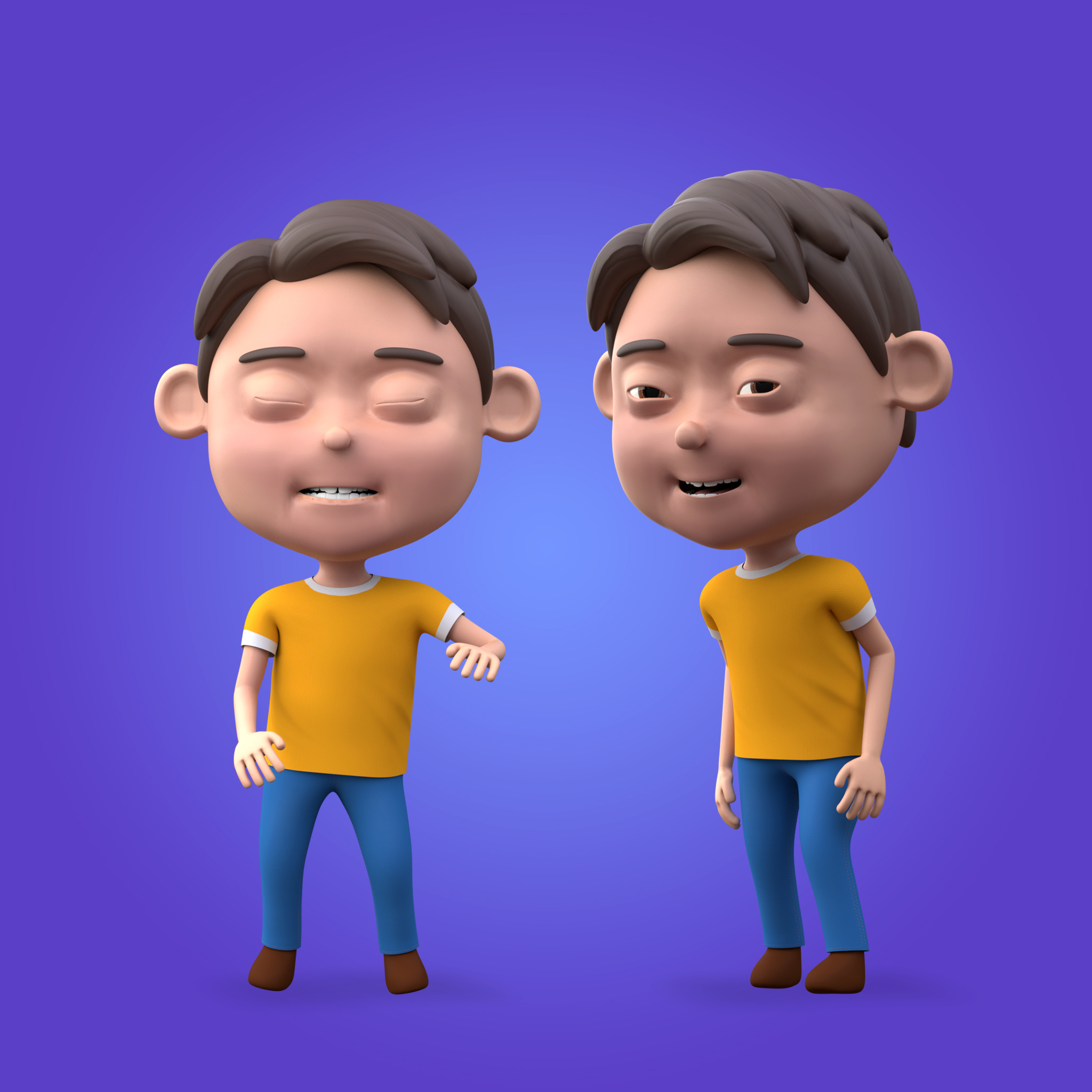 The my new cute 3d cartoon character is perfectly ready and downloadable right now. And I wanted to share with yours. If you have any animation or gaming projects you can use wherever you want.