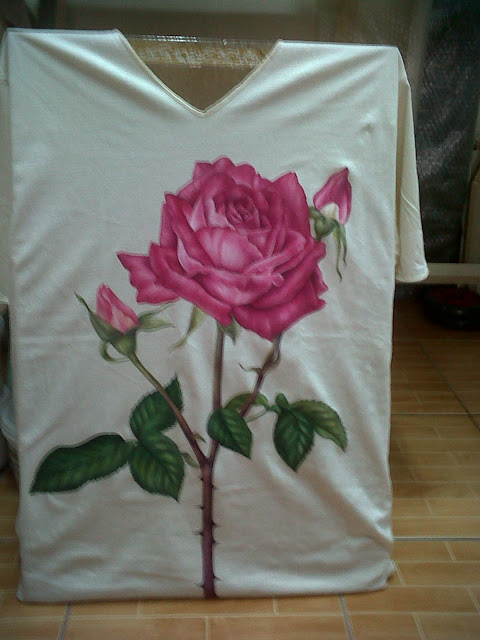 Painting on T-shirt / Big Roseumsure (37)in #art • 8 years ago Hobby is happiness for life Do it for happiness.Hobby makes us relax. This is painting the rose on T-shirt with acrylic color. #painting #design #life #hobby