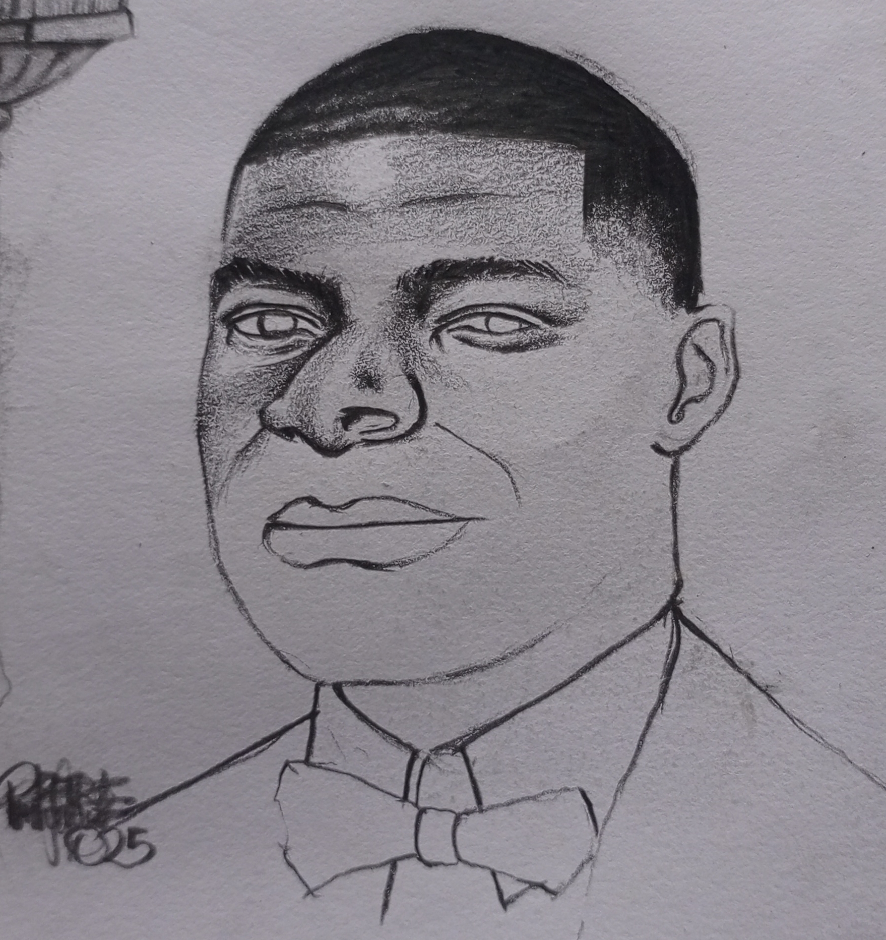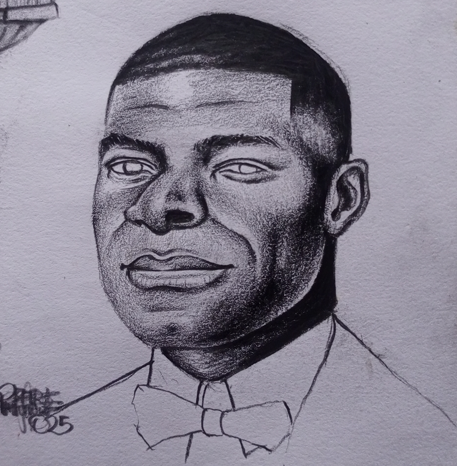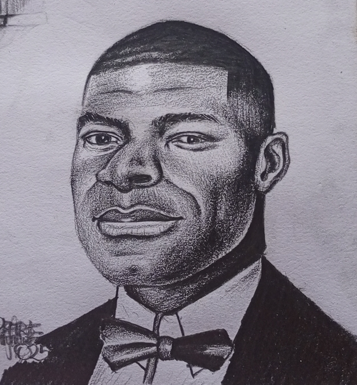 This portrait captures the poise and determination of football star "Kylian Mbappe" - a face that reflects confidence, focus and the drive of a true champion. Through careful shading and bold contrast, I aimed to express not just his likeness, but the unshakable energy that defines his presence on and off the pitch.