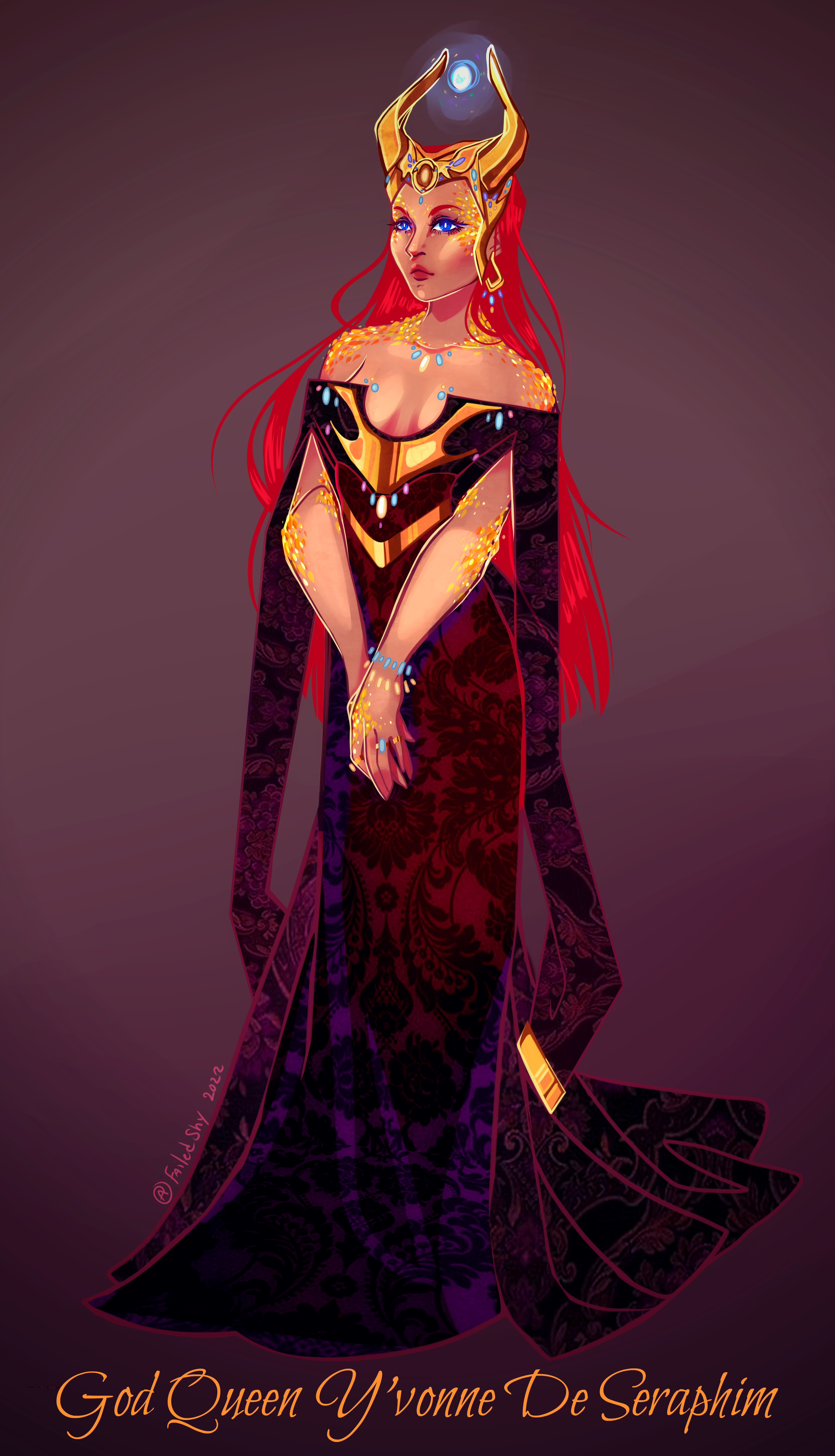 God Queen Y'vonne De Seraphim Artworkvmmouchas (62)in #art • 4 years ago Y'vonne De Seraphim, God Queen of Pryldahn, Heir Apparent to God Emporer Cervial, One kf The Last True Dragons, among other lofty titles. Thank you to my artist Shiloh Roper for bringing my characters to life. She is the best. #painting #digital #medieval #writing