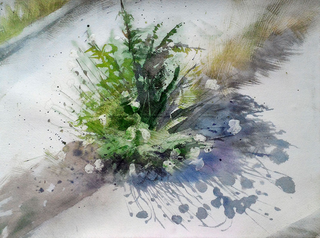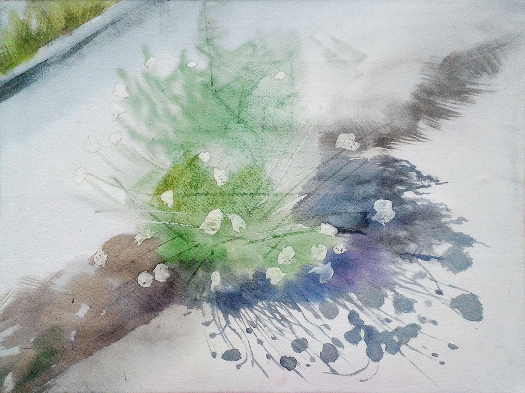Today I watched my photos from Spain, and I found this beautiful poppy bush. I continue to master the methods of watercolor. And in this picture I again used a plastic card, a bristle, a rough brush, paint splashes and a backup liquid. I like that with the help of these tools the picture is inaccurate. That's I got.