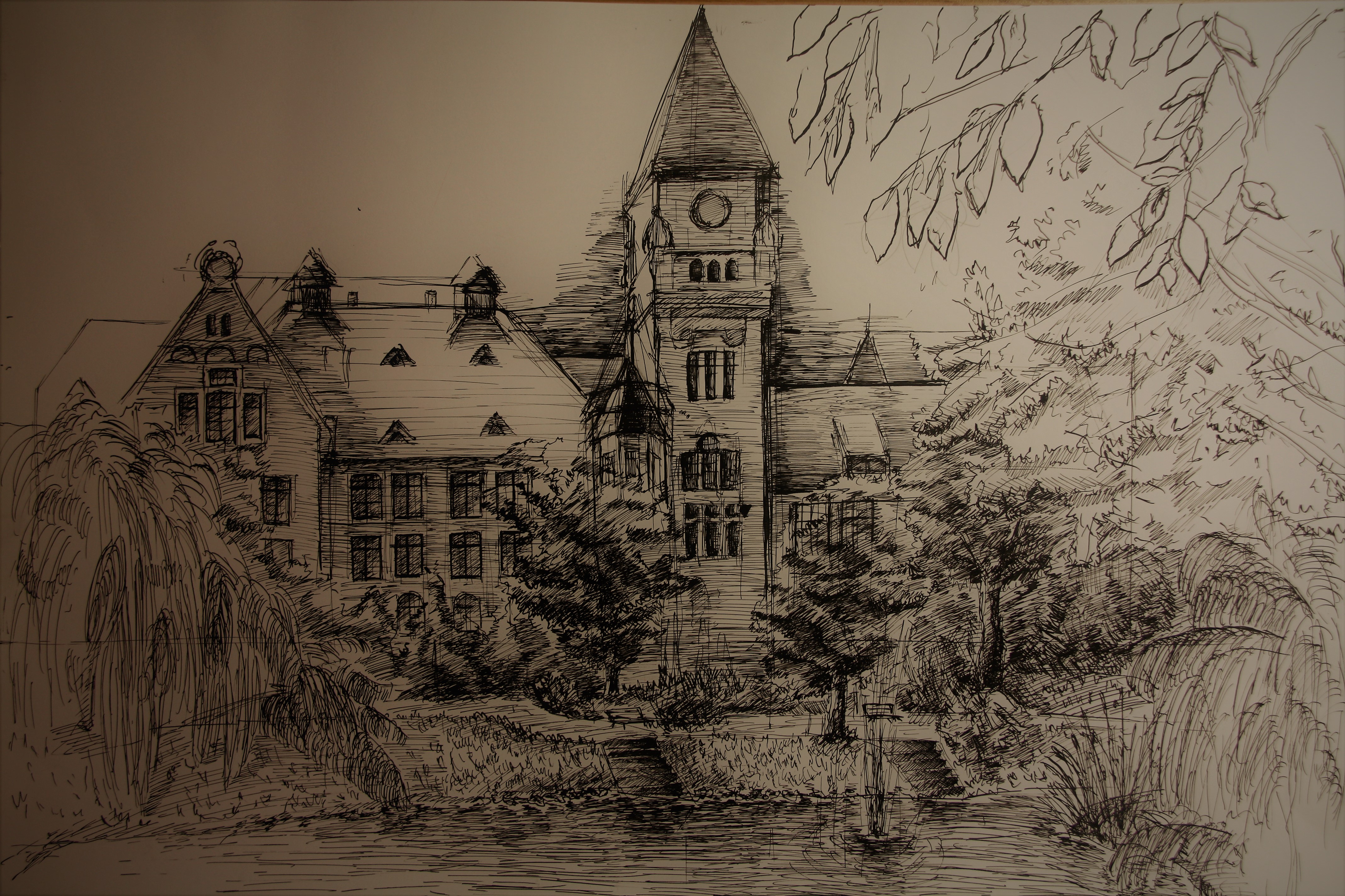 (Koty to wredne stworzenia... Pomimo zabezpieczeń i chowania swoich prac pod przykryciem i głęboko pod szafą, wyciągnął pazurami rysunek i stwierdził, że "s** na taką sztukę". Tak tym oto sposobem mój Park Tołpy skończył w koszu z wielką plamą na środku... :/)