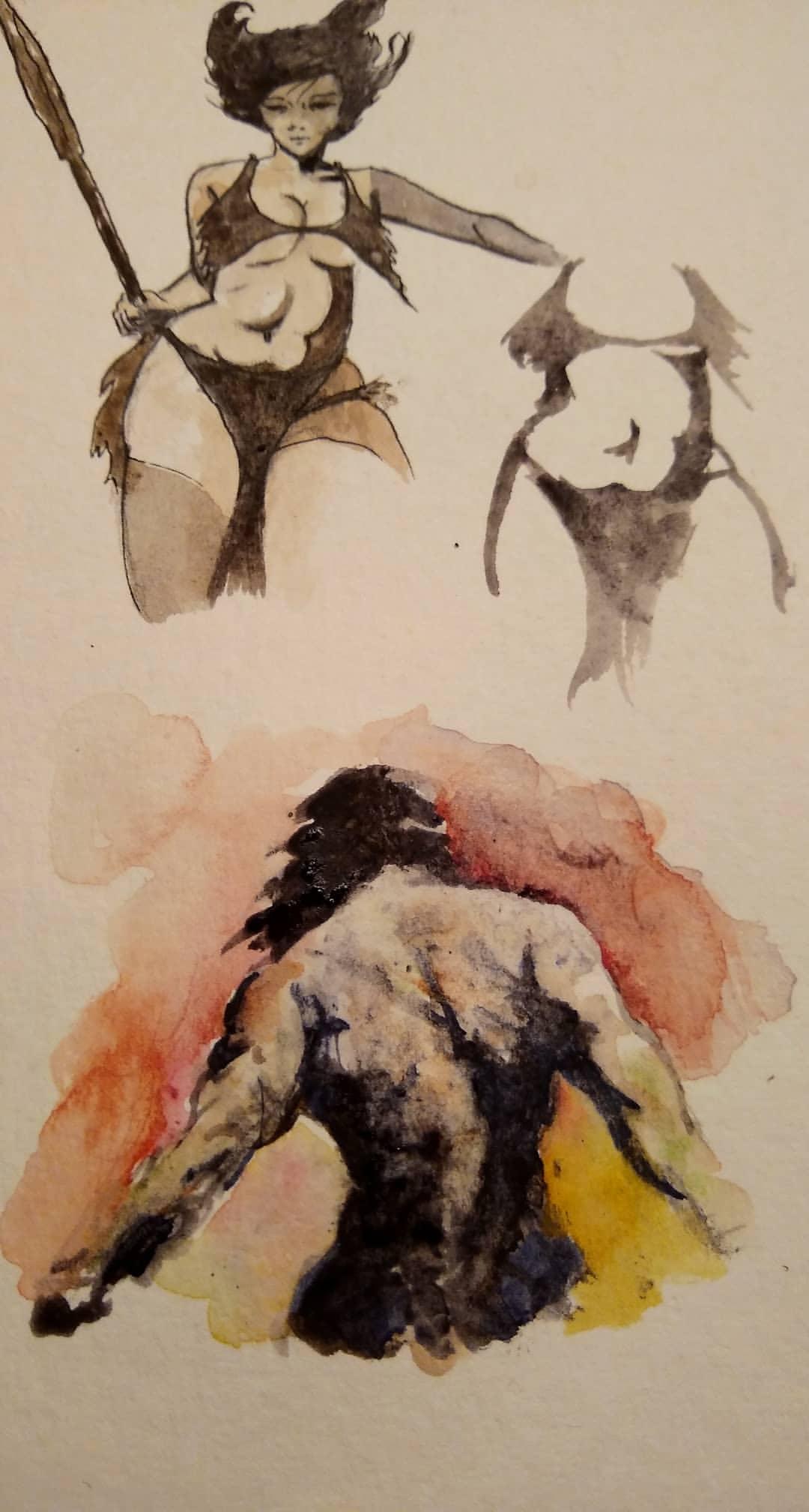 I've been really interested in the artist Frank Frazetta recently. Looking at some of his comic work and book covers inspired me to attempt to emulate his style.