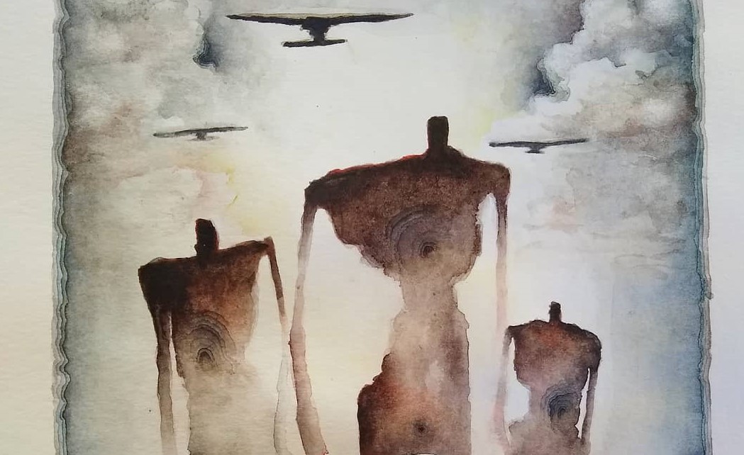 nice painting !! a profound theme. usually what inspires you to decide what to paint? It seems to me that there is an air attack. men have been hit, they have holes in them, but they try to escape even if with difficulty. the other forms closer to us seem to me to be rabbits, which perhaps with the animal instinct stopped to understand what is happening. The fact that there are more dimensions and that these rabbits are close to us involves us in the painting itself as if we were there with them. but we know. run away, run away, we scream. but it is not enough: the inevitable will happen.