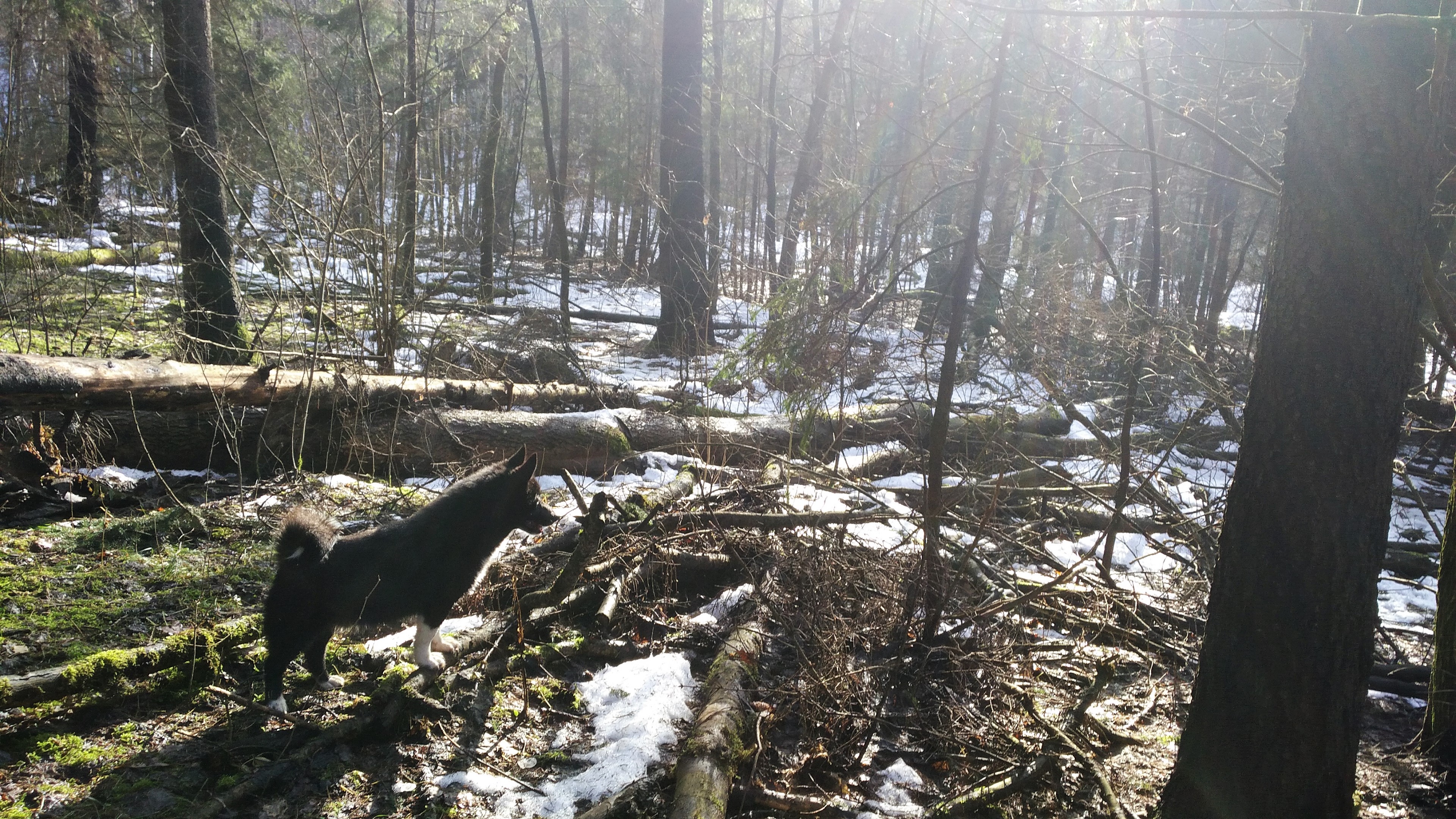Suspiciously chubby even if though he get's a lot of exercise and healthy food. We go to the woods everytime we can, so he get's at least a few hours weekly to roam around and spot and chase a rabbit here and there.