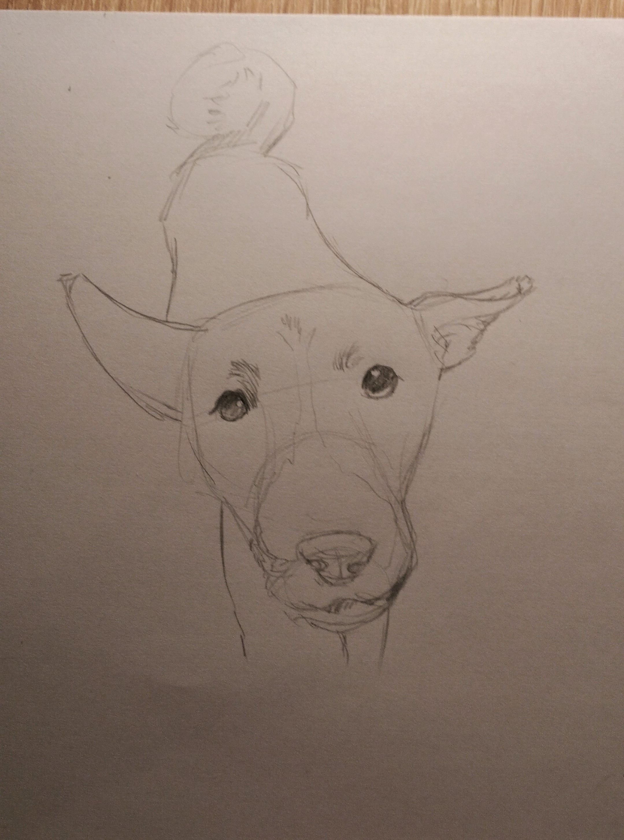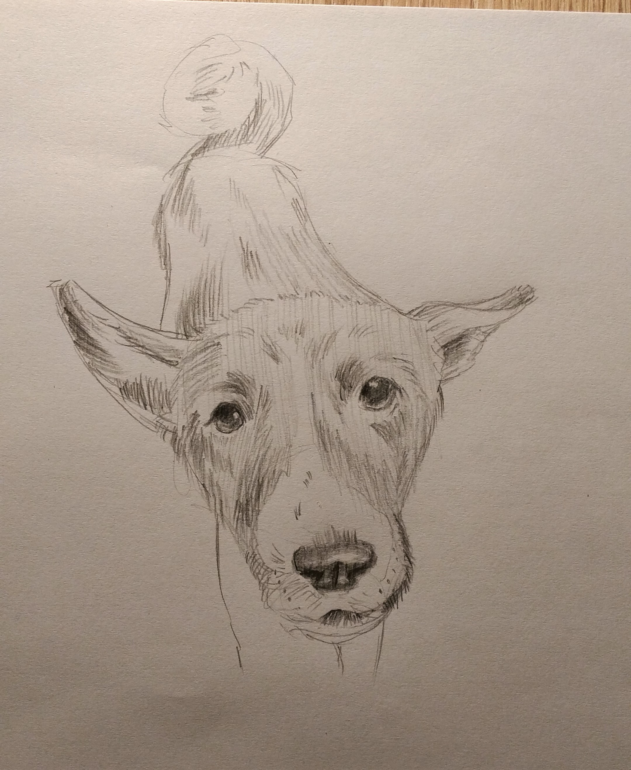 And I only took 3 process pictures ooof, honestly I didin't think this little drawing would be any good hence not a lot of pics :D The reason I thought that is because my dog is rather goofy looking. It is extremely hard to snap a good picture of her, she almost always has a funny expression, here let me show you :D